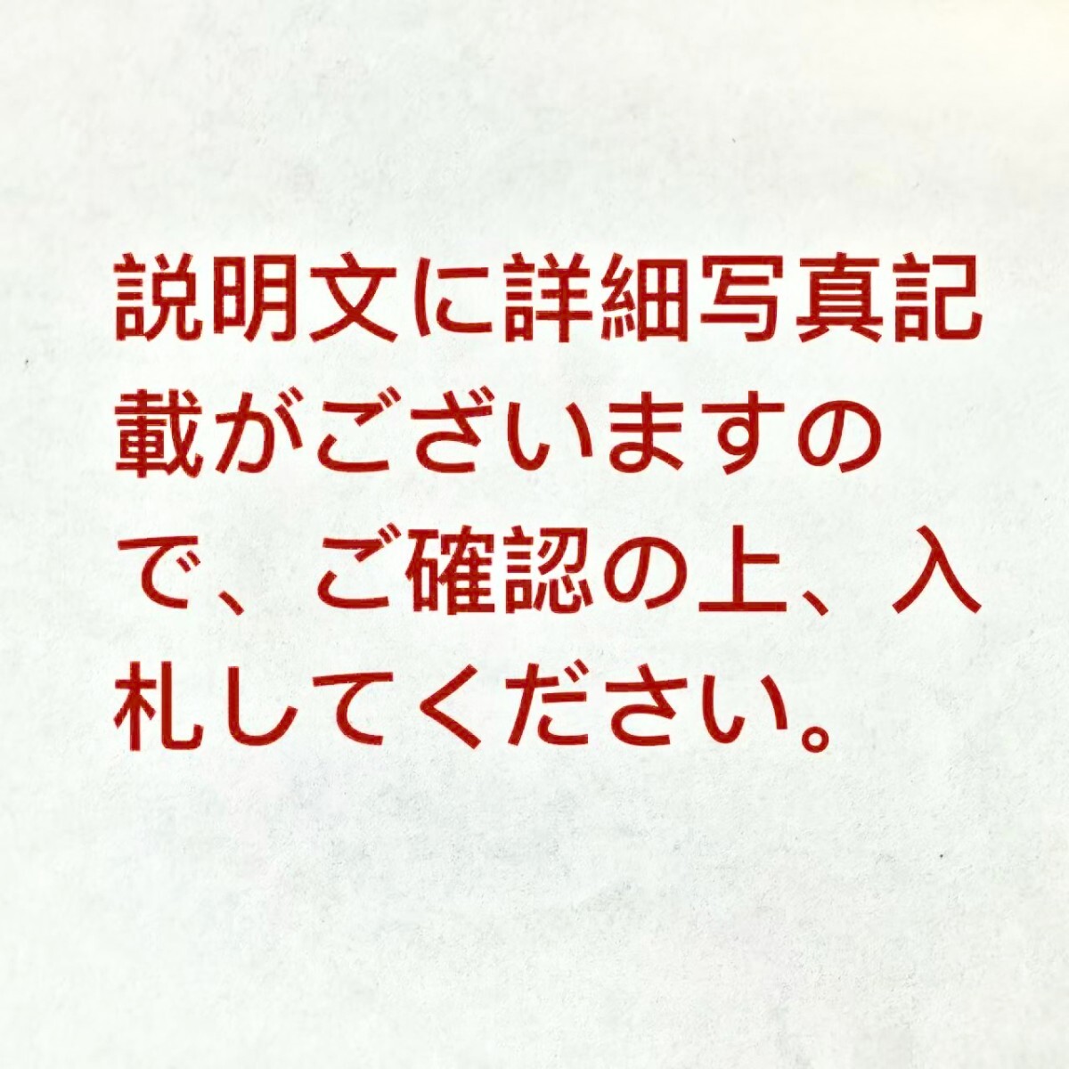 ※同梱発送について、当日に落札された商品のみ発送可能ですので、ご了承ください。 ご覧いただきありがとうございます。購入前に下記内容を必ず読んでください。 タイトルにございます分類は下記の通りとなります。 ご確認の上、十分にご検討いただきご入札をお願い申し上げます。 価値判断、状態(オレ・シミ・イタミ・その他)は画像でよく御確認の上ご入札ください。 特に記載がない場合、箱等の付属品は画像にあるものが全てです。 ある商品について知識不足可能性がありますので、判断間違いましたら、ご指導ご鞭撻有難いです。 トラブル防止のため不明等のご質問等ございましたら必ず入札前にお願いします。 ※いたずら入札やご購入の意思のないや新規の方の入札が多い為、評価が方のご入札はお取消しさせて頂くことがございます。 ※終了当日・直前のご入札の取り消しはトラブルの原因となりますので、ご遠慮いただきます。ご入札の際はお間違いのないようお気を付け下さいませ。 ※商品画像は発送後より最長7日間残し、7日を過ぎますと削除されます。予めご了承下さい。 ※ご使用のブラウザやパソコンのモニター環境などによっては、多少色合いなどが実物とは異なって見える場合があります。ご理解の上、ご自身がご納得いただけます価格でのご入札をお願いいたします。 商品の制作年や元の持ち主様の保存状態等により、経年劣化が進んでいることがございます。 作品のダメージにつきましては、すべての出品物は骨董品、中古品ですので説明しきれない時代物としてのシミ・イタミ・シワ・剥脱・ヤブレ・ヤケ・変色等見られます。目立つダメージは明記しておりますが、画像では見にくい細かなダメージがある場合がございます。骨董品・美術品としての特性としてご理解いただけます場合のみご入札をお願いいたします。