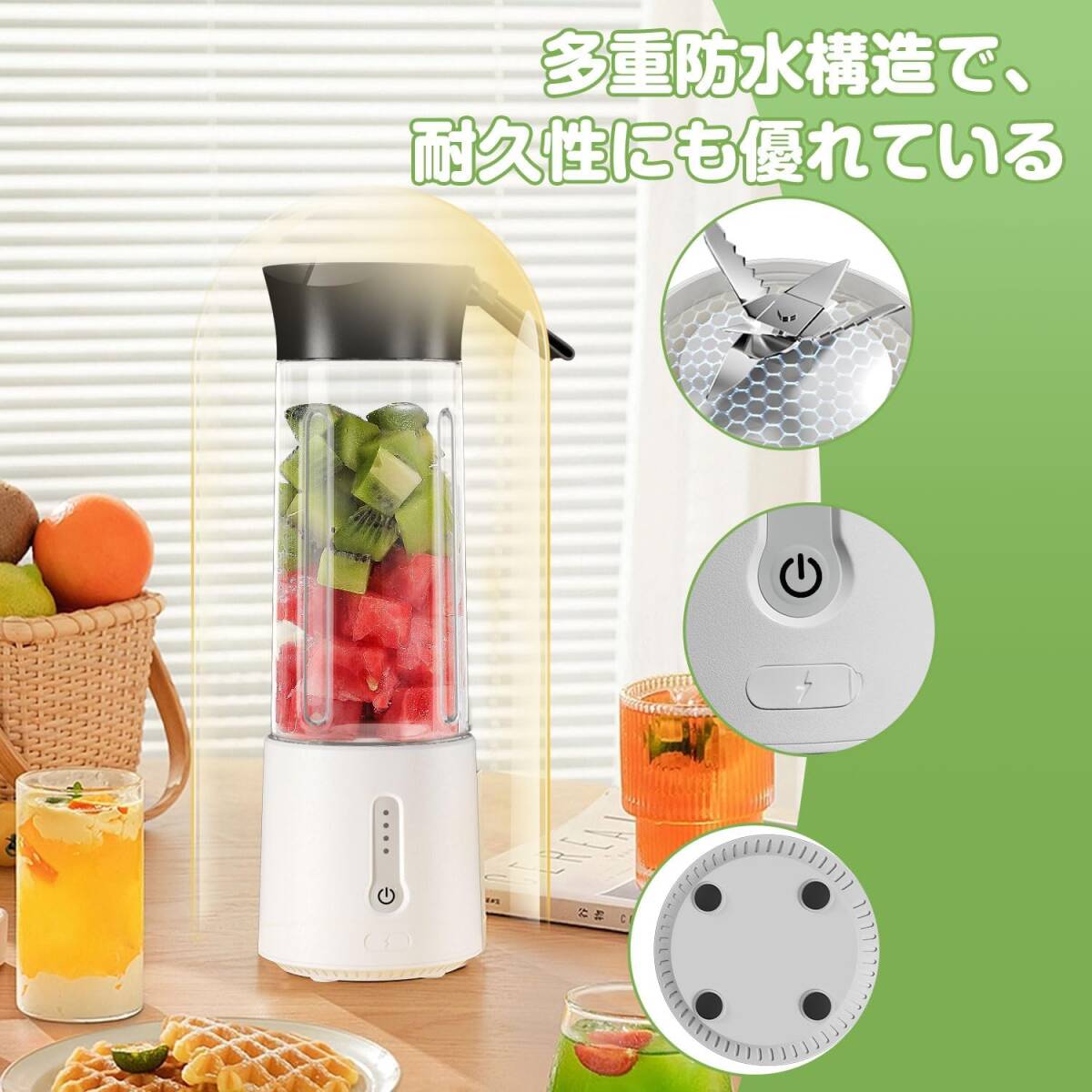 【米国PCT-G素材+304ステンレス】ミキサー ジューサー 500ml USB充電式 コードレス 日本語取扱説明書 ホワイト