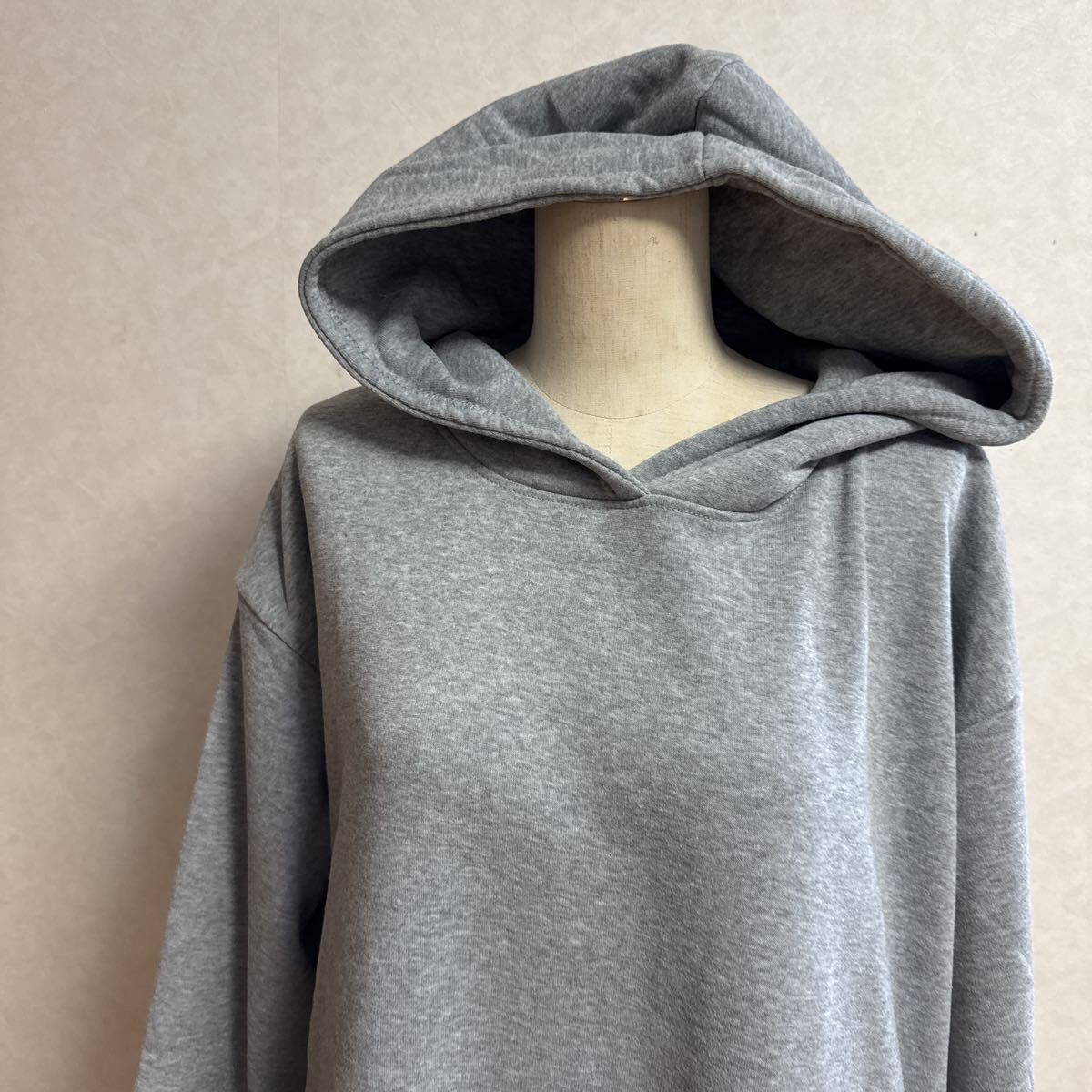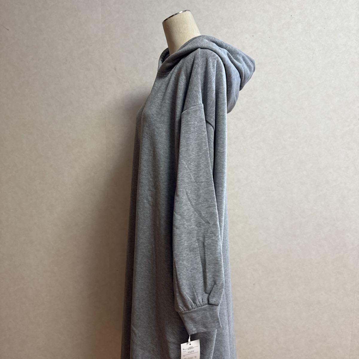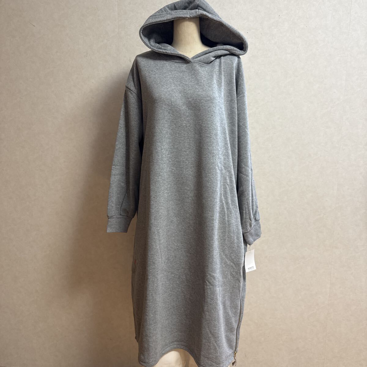 KN3193 *4L 大きいサイズ 裏起毛裾ファスナーパーカーワンピースグレー 右ポケット下付近生地不良
