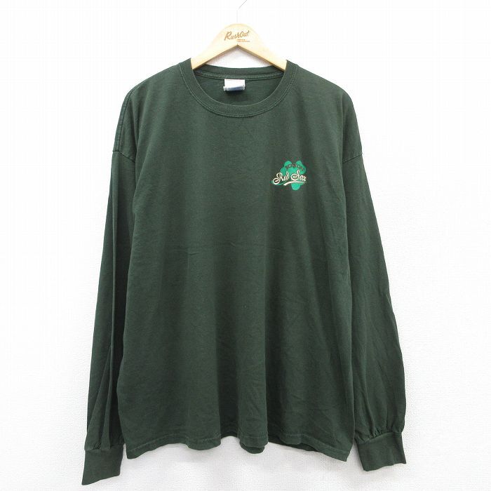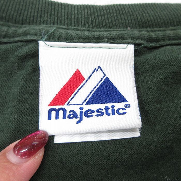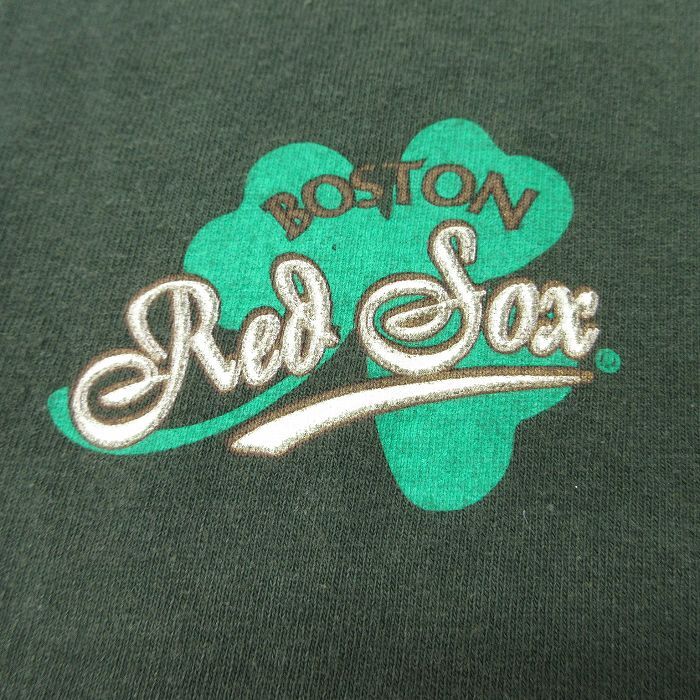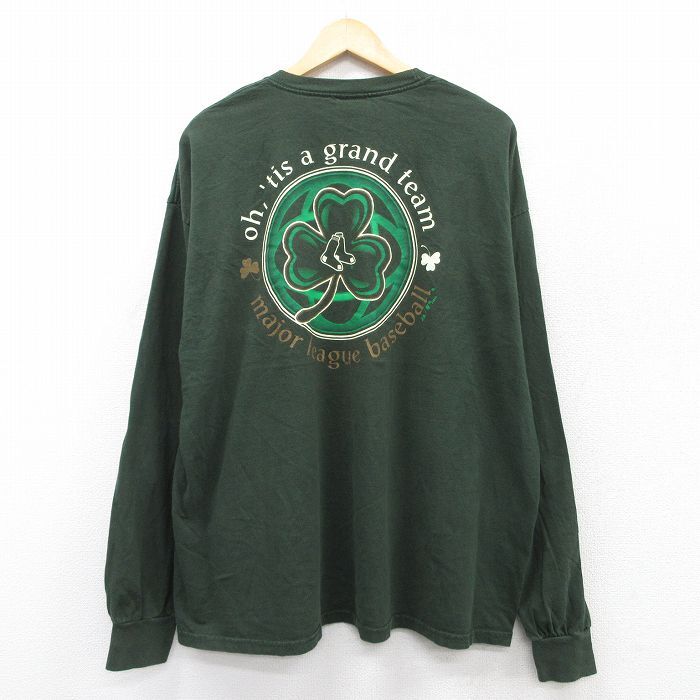 【商品名】 XL★古着 マジェスティック 長袖 ビンテージ Tシャツ メンズ 00年代 00s MLB ボストンレッドソックス 大きいサイズ コットン クルーネック 濃緑 メジャーリーグ ベースボール 野球