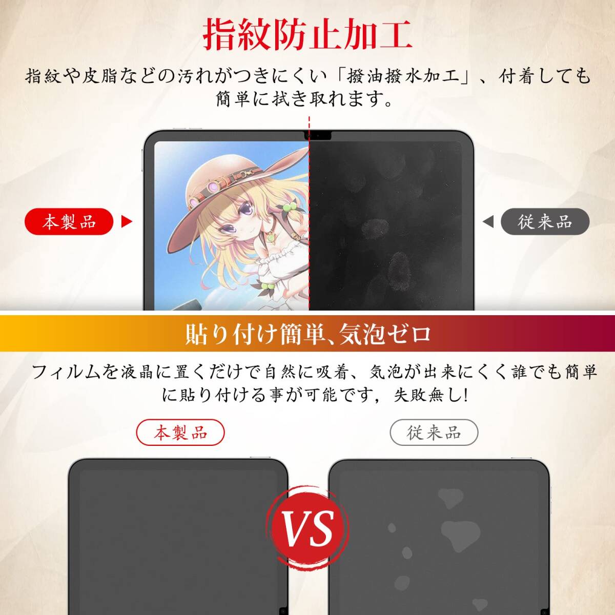 【気泡無し・簡単貼り付け】詳細なインストールガイドとビデオが付いており、初心者でも簡単に貼りつけることが できます。また、ペーパーフィルムは強い吸着力を備え、気泡やホコリが入りにくく、画面を傷付けてしまう恐れは ありません。質問があればいつまでも連絡お願いします。