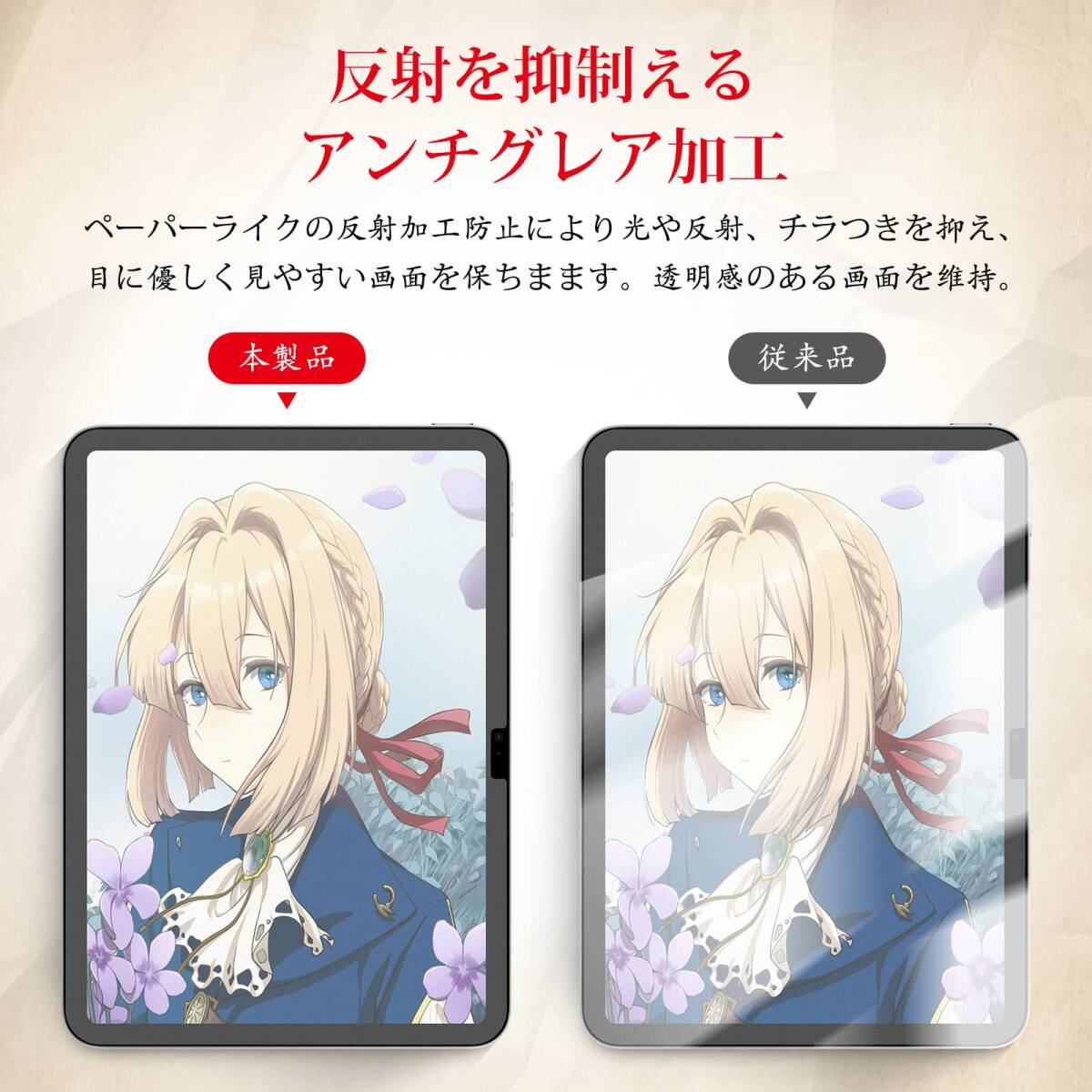 【アンチグレア加工・反射防止】iPad 第10世代 フィルムの表面はアンチグレア加工が施され、太陽や照明の 反射を抑え、映り込みやチラつきを気にすることなく作業に没頭できます。また、目に優しく、画面も見やすく、アウトドアで端末の使用に影響を与えません。