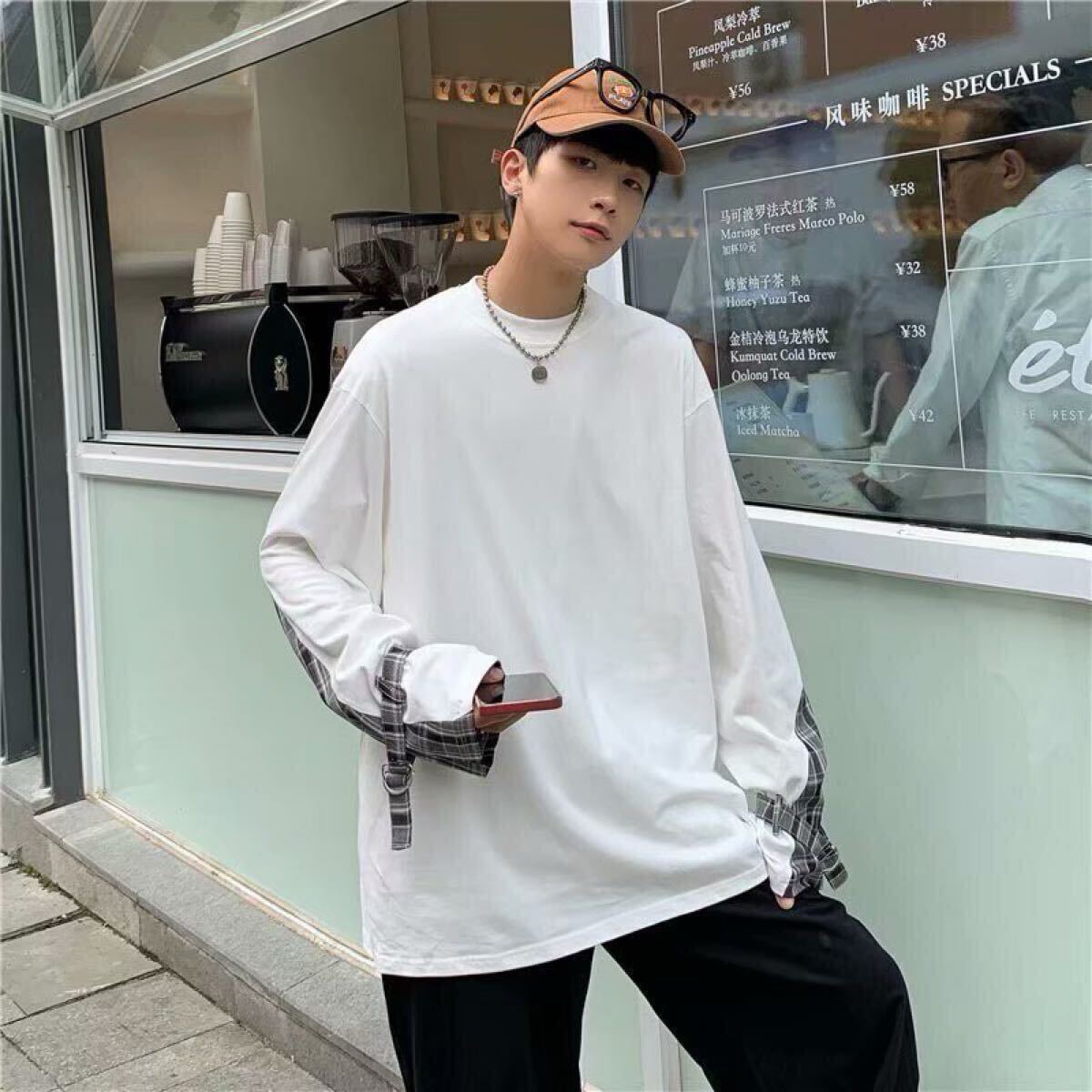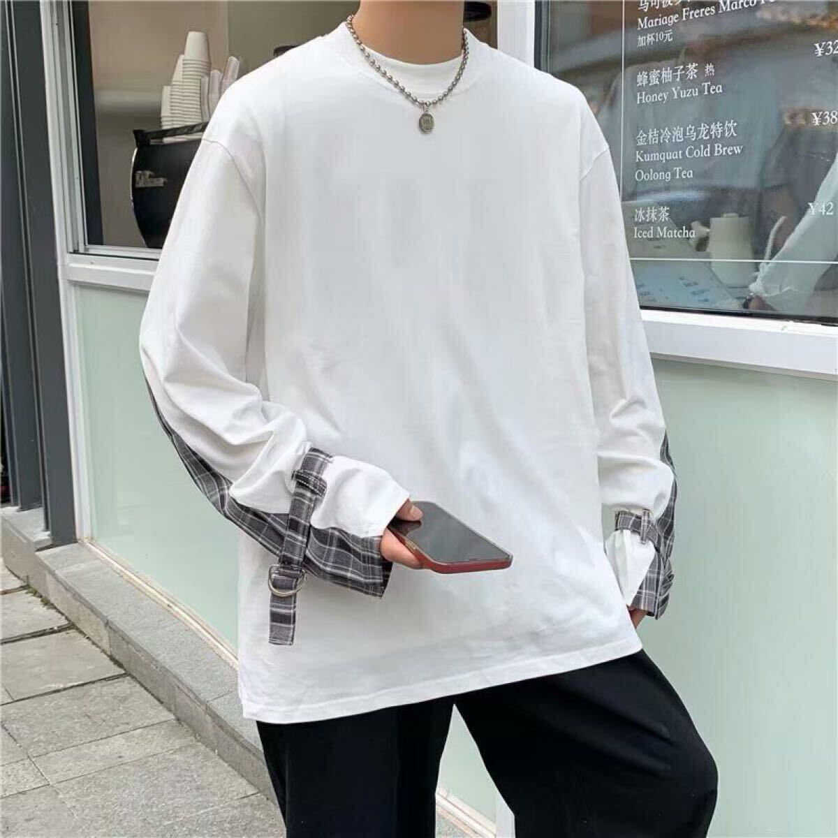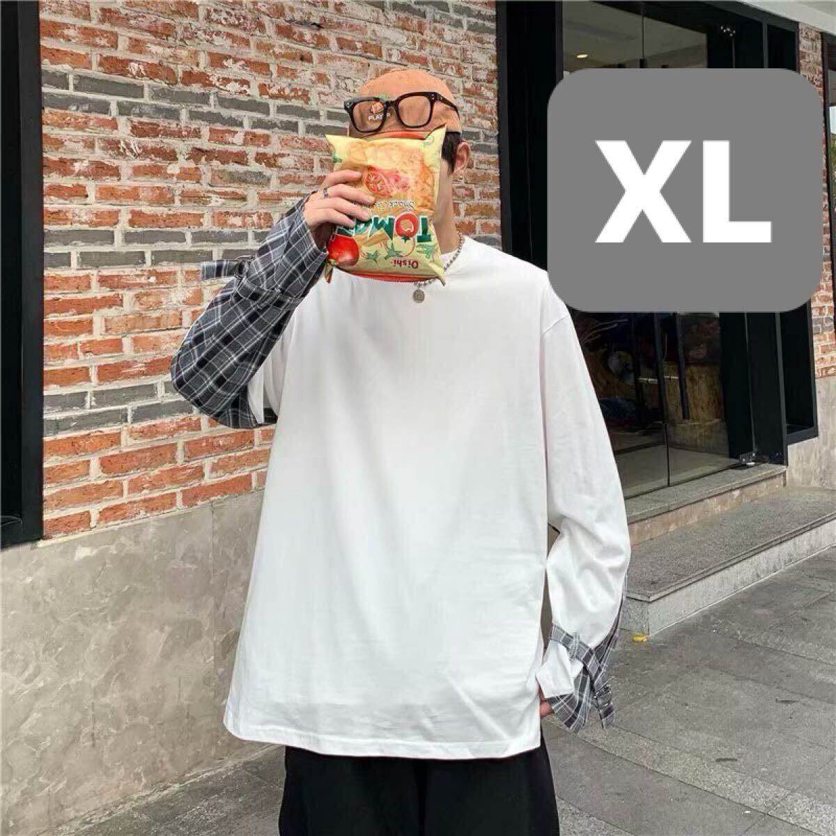 ロングTシャツ チェック トップス ロンT ビッグシルエット