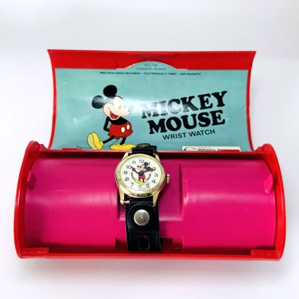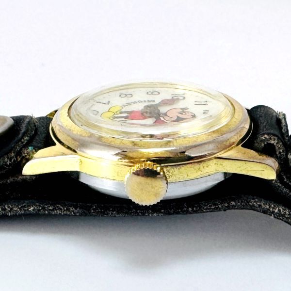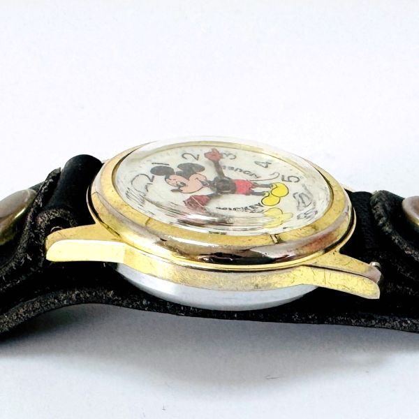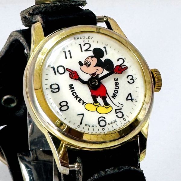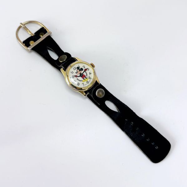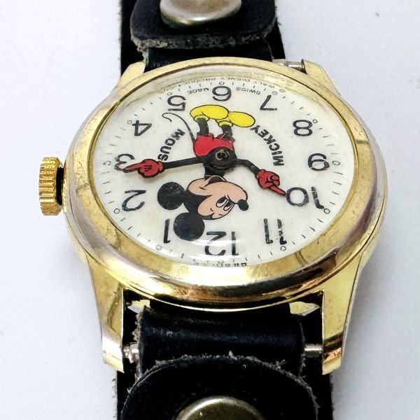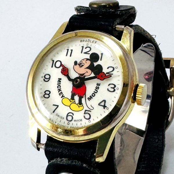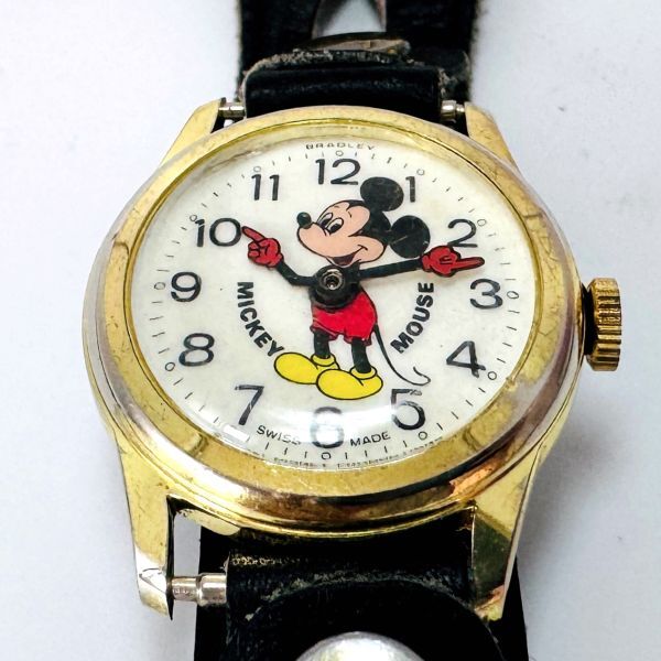 ディズニー社の正規キャラクターウオッチの本格派として定評のある、 スイス・メイドのアメリカ・メーカー 「BRADLEY(ブラッドレイ)」 ミッキーマウス腕時計です。 バンドもオリジナル。 風防に子傷があります。写真参照。 可愛らしいミッキーに、ミッキーの手で短針長針が時刻を表します。 ブランド:BRADLEY ケースサイズ:約39mm(リューズ除く) ケース厚:約10mm 腕回り12~16cmまで ムーブメント:手巻き OH時期不明 アンティーク時計オススメポイント ・値崩れしにくい! ・流行に左右されない、デザインが被らない! ・定期的なメンテナンスで、実は長く使用できる! アンティーク品のため1点限りとなります 是非ご検討ください。 保障 到着されましたら、商品ご確認お願いいたします。完全なる初期不良、不具合などありましたら無料修理、全額返金させていただきます。受け取り後3日以内にご連絡ください。返品送料など全額負担します。 お客様都合の返品 出品手数料(20%)、返品送料などをご負担お願い致します。受け取り後3日以内にご連絡お願いいたします。 発送の際に梱包材などを再利用することがあります。 古いものですので傷や汚れはあります。状態は良好ですが非常に古い中古品ですので修理やメンテナンスが必要になる場合もあります事をご理解いただき、ご注文をお願い致します。 アンティーク商品の為1点しかございません。 この素敵なアンティーク商品であなたの1日が より素敵になる事を願っています。