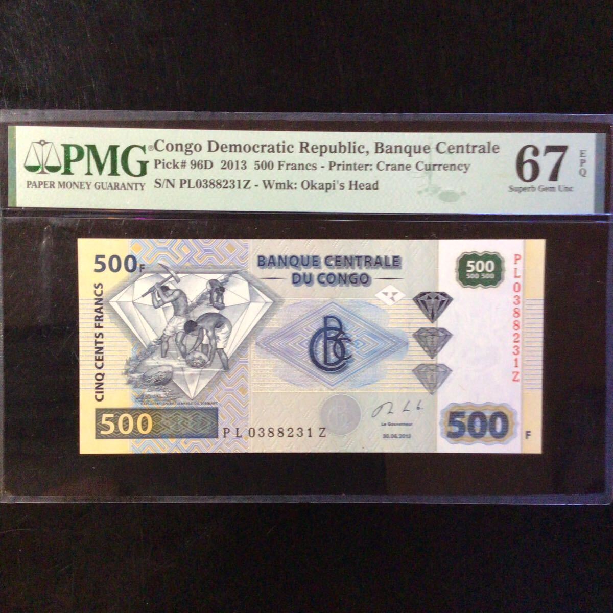 コンゴ民主共和国《中央銀行》500フラン【2013】『PMGグレーディング鑑定 未使用 67 EPQ』*状態表示については、個人によって多少の違いがありますが画像にて判断し納得して頂ける方のみ入札して下さい。