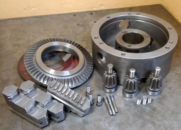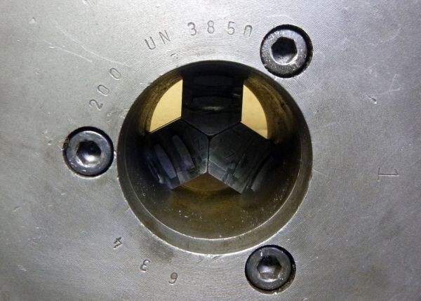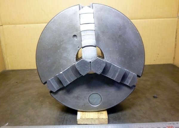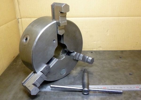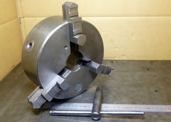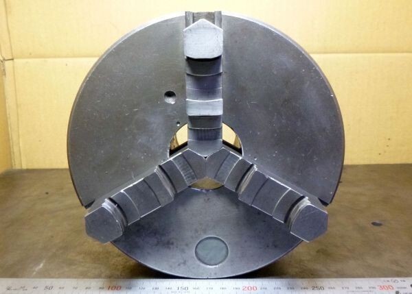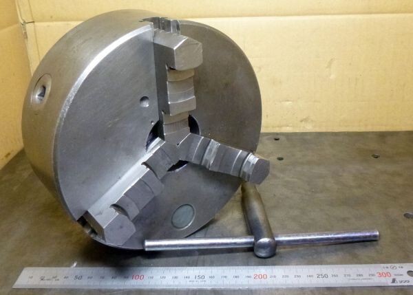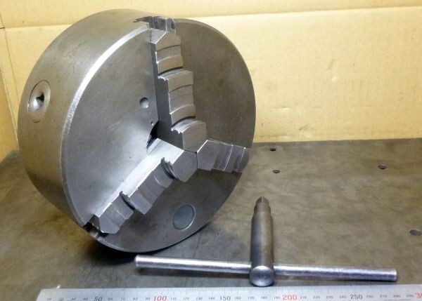 ★3爪 スクロールチャック 丸200 内外兼用爪 ハンドル付 O/H済! 中古