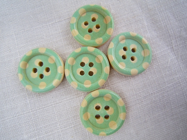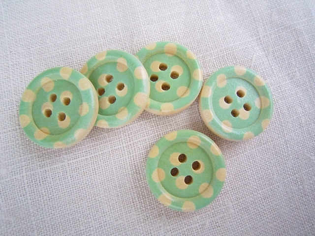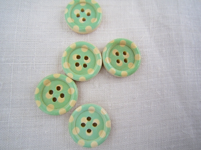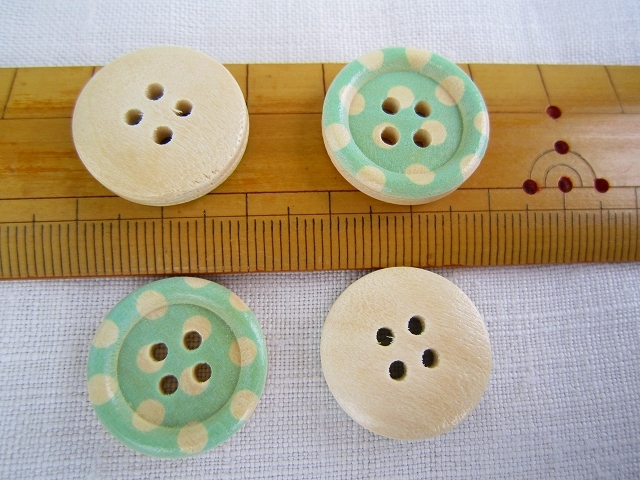 ドイツ 木製ボタン 4穴ボタン ドット柄 ターコイズブルー 直径20ミリ