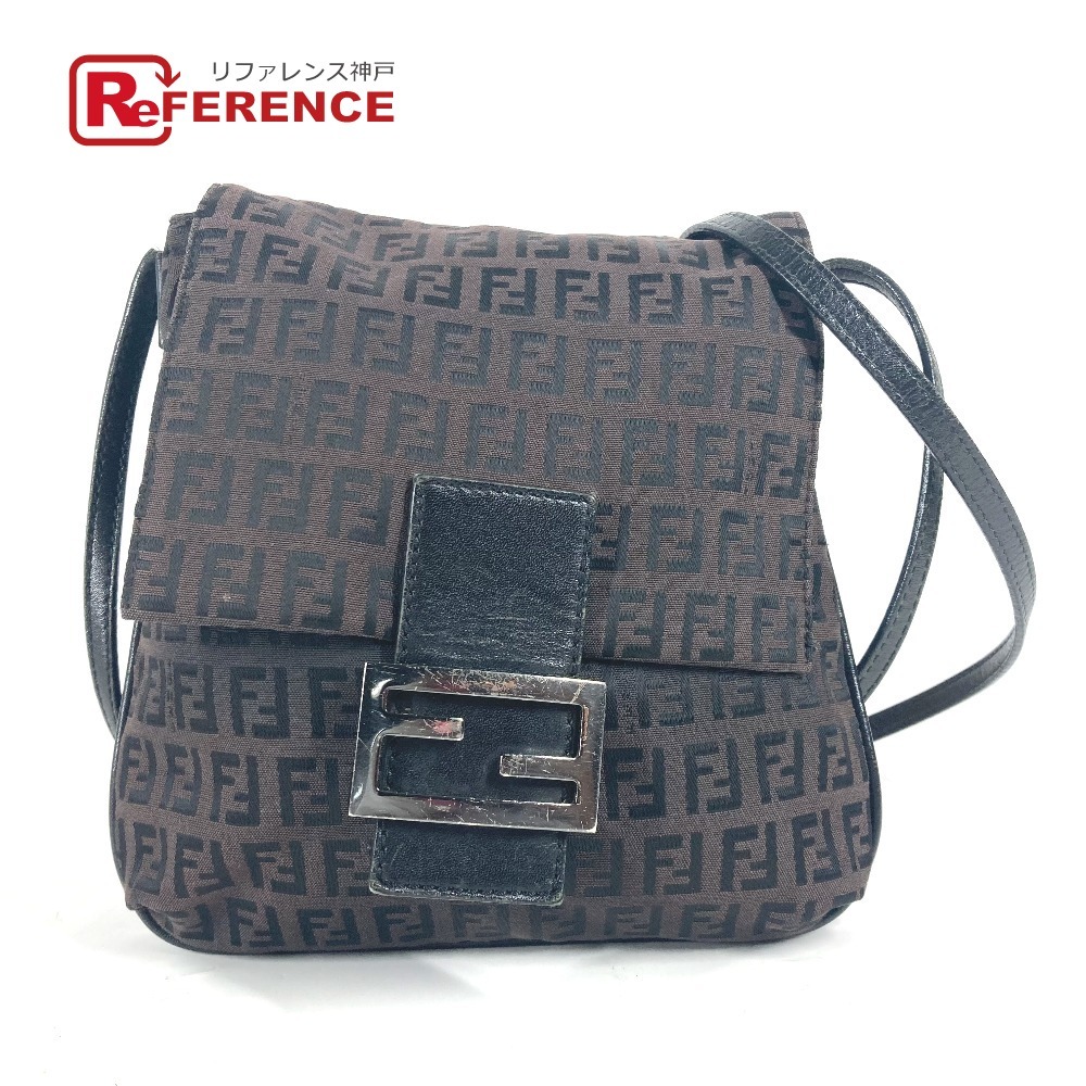 FENDI フェンディ ズッキーノ ロゴ フラップ 斜め掛け カバン ポシェット ショルダーバッグ ブラウン レディース【中古】