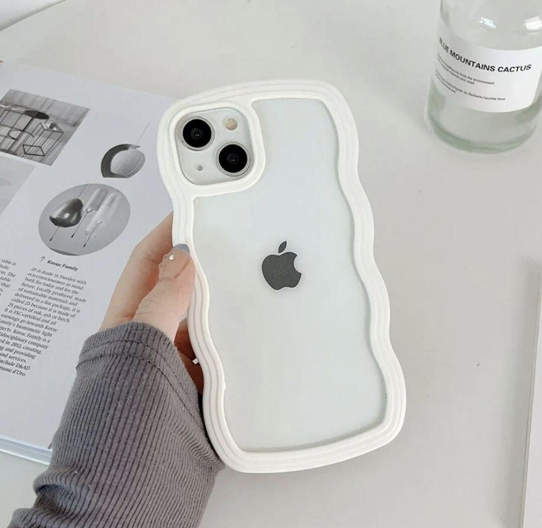 ウェーブ ふちどり 白 クリア なみなみ 可愛い