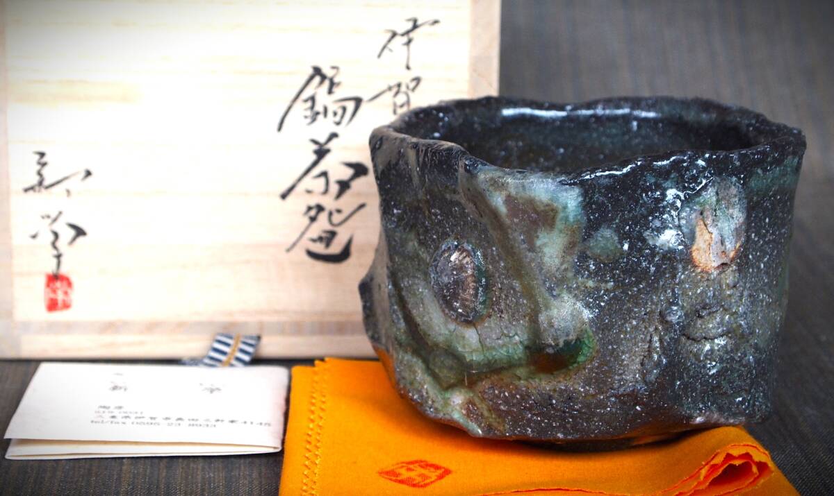 | 最上作★新学【師&父:新歓嗣】★伊賀鎬茶碗★ビードロ★共箱・共布 | |