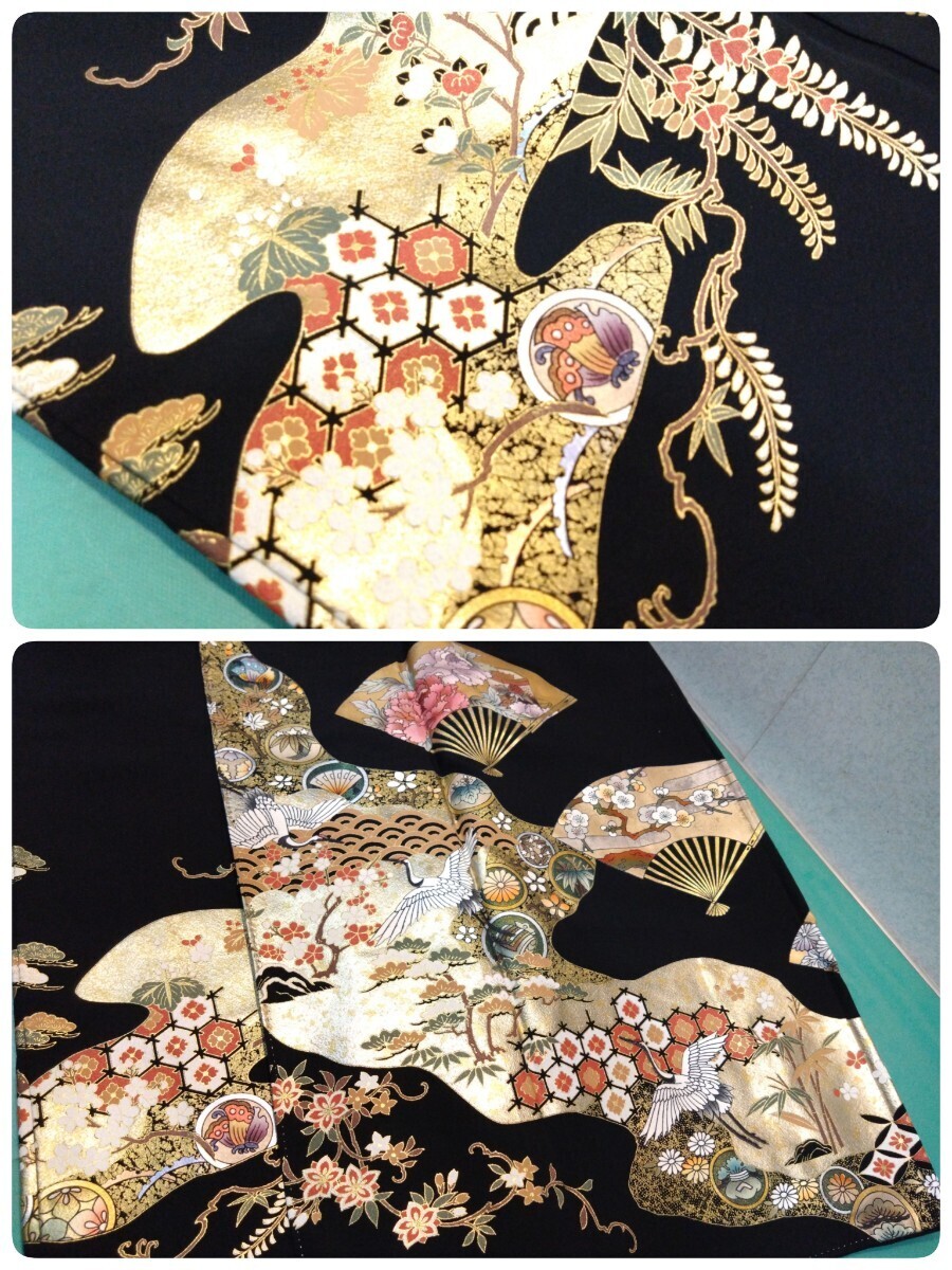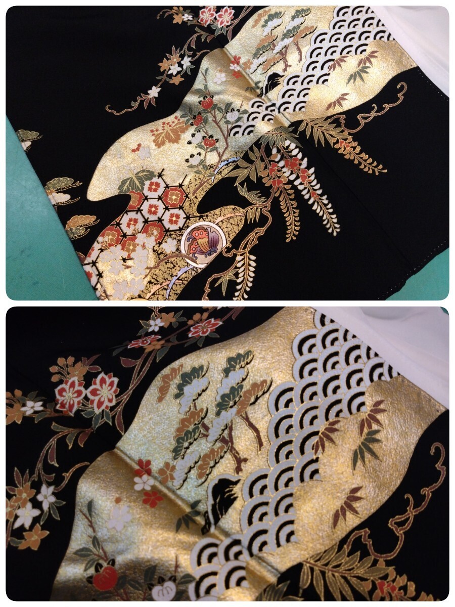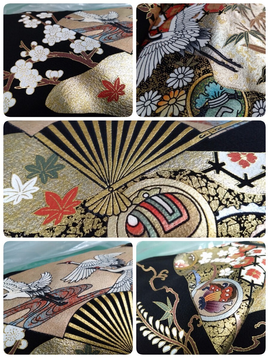 ● 25【本金箔】【友記工芸】落款 黒留袖 着丈147cm 裄丈57cm 正絹 着物 豪華絢爛 五つ紋 丸に木瓜 鶴 雅 繊細 美術品 中古 ③