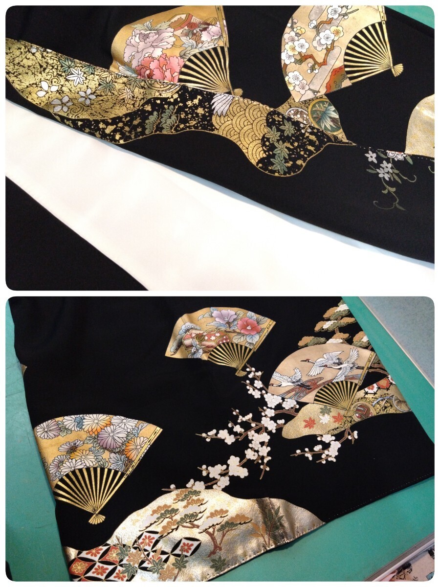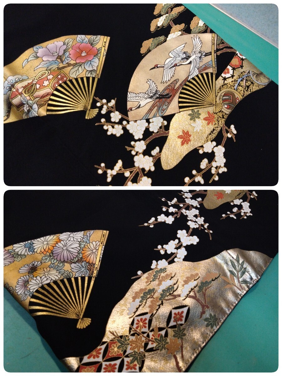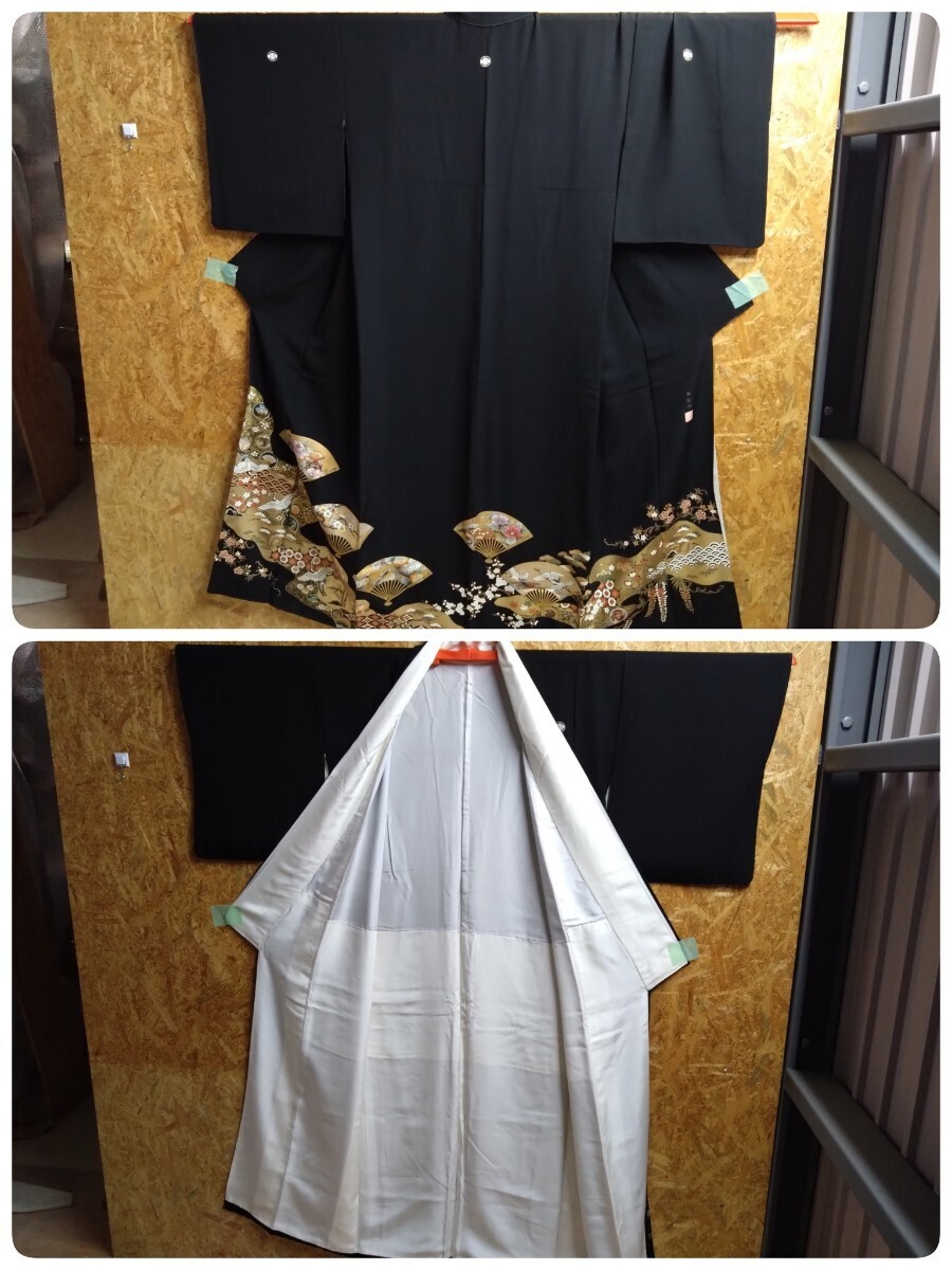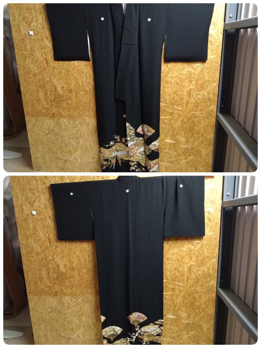 ● 25【本金箔】【友記工芸】落款 黒留袖 着丈147cm 裄丈57cm 正絹 着物 豪華絢爛 五つ紋 丸に木瓜 鶴 雅 繊細 美術品 中古 ③