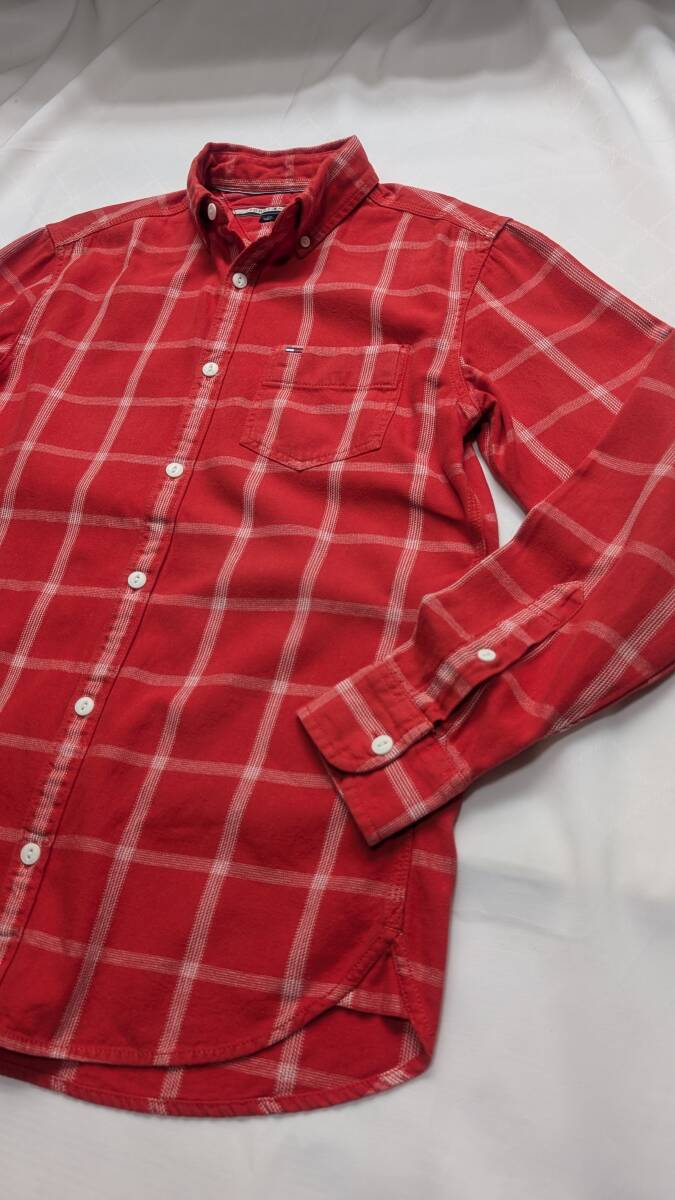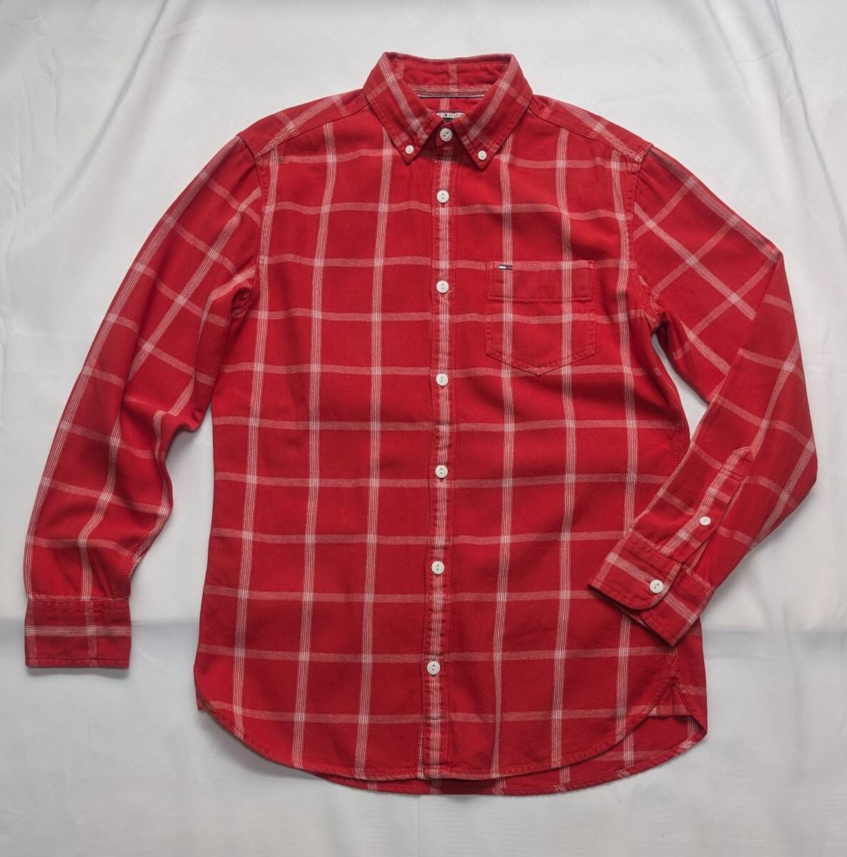 送料無料 TOMMY HILFIGER トミーフィルフィガー チェック 胸 ロゴ 刺繍 オンブレ 格子 コットン BD ワークシャツ 長袖 シャツ ネル
