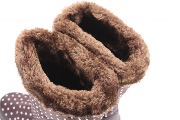 可愛いドット柄デザイン、ボア付き レディース防寒ダウンブーツ。