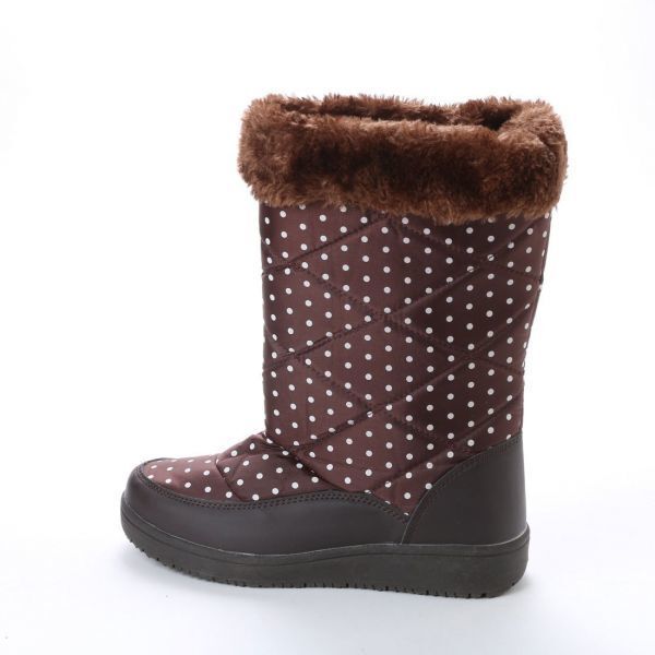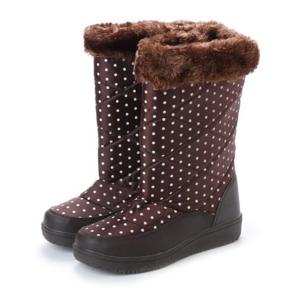 アウトレット レディース 防寒ブーツ L/24.0-24.5cm ブラウン ドット柄 ニット素材 ボア ミドル丈 ウィンターブーツ スノーブーツ 17688 ②