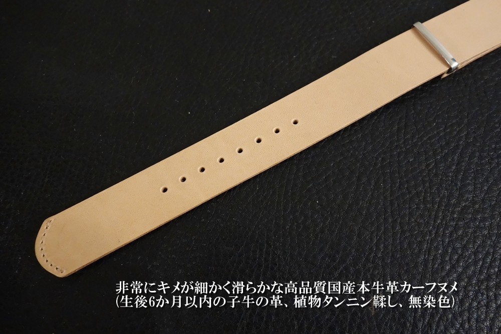 ◆Leather NATO G10Strap◆高品質国産本牛革カーフヌメ革 NATURAL 18mm Custom Order(BUCKLE COLOR) 日本製 受注生産(納期10日前後) |