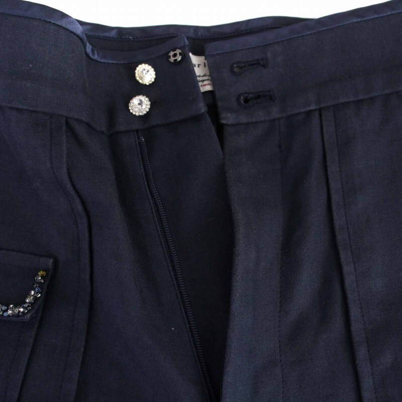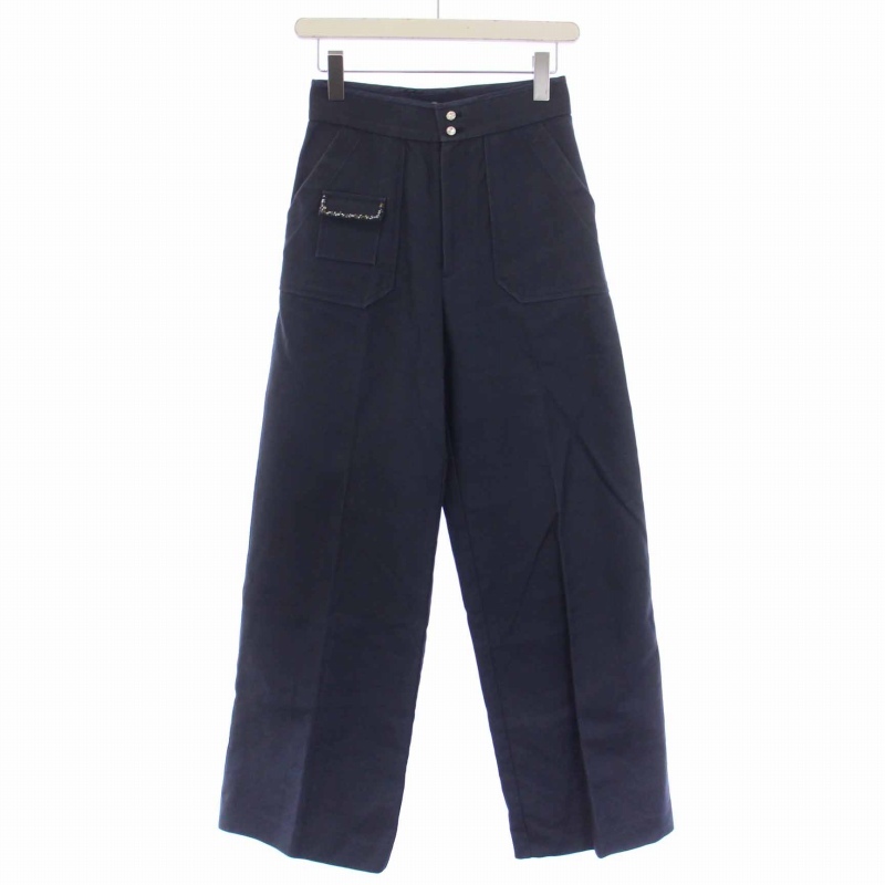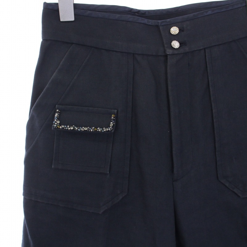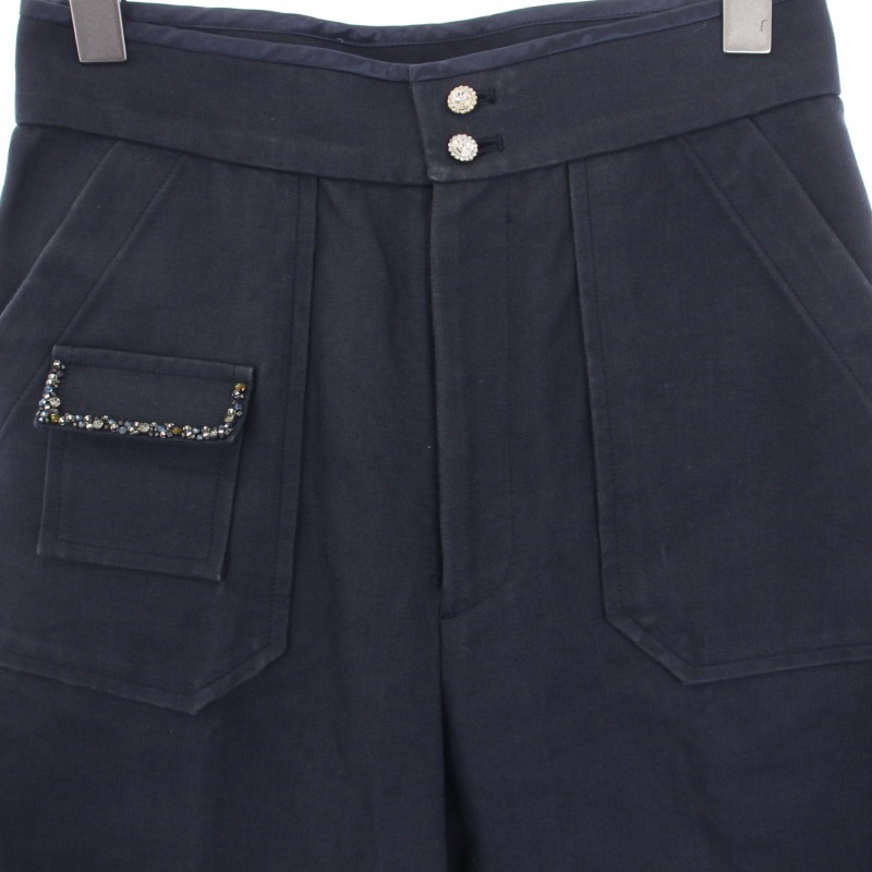 ルルロジェッタ ルールロジェット leur logette ワイドパンツ ジップフライ ビジュー装飾 0 XS 紺 ネイビー /BM ■GY30 レディース