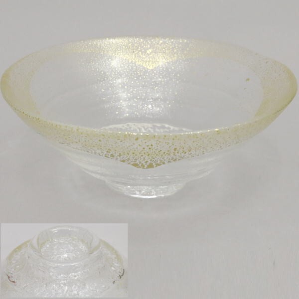 抹茶茶碗 硝子(ガラス) 極光(オーロラ) 金箔 白 渡部信二作 非耐熱硝子