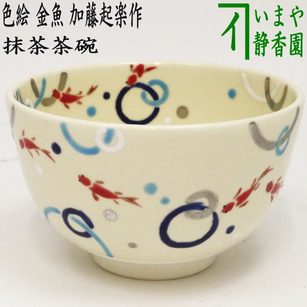 茶道具 抹茶茶碗 色絵茶碗 金魚 加藤起楽作 茶道