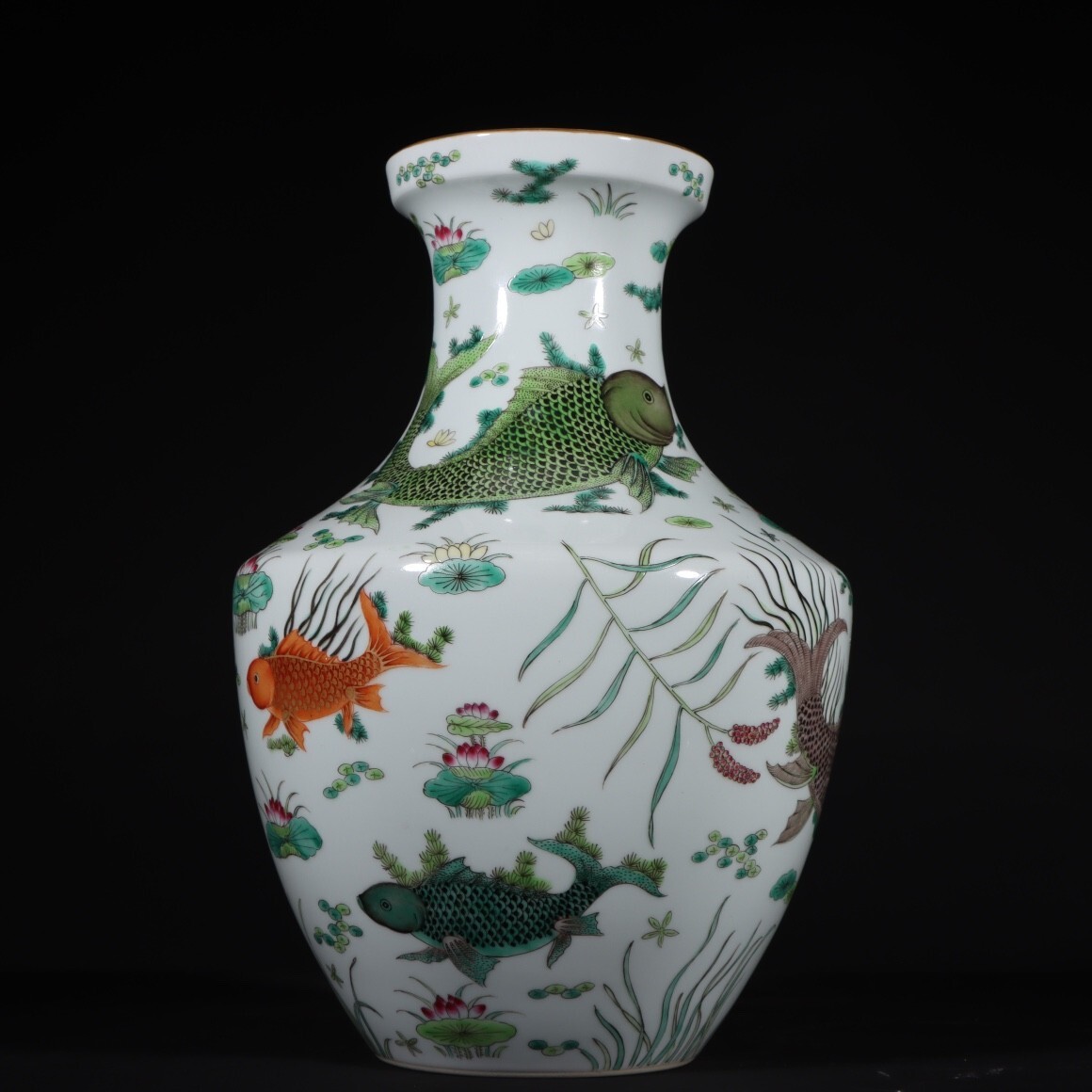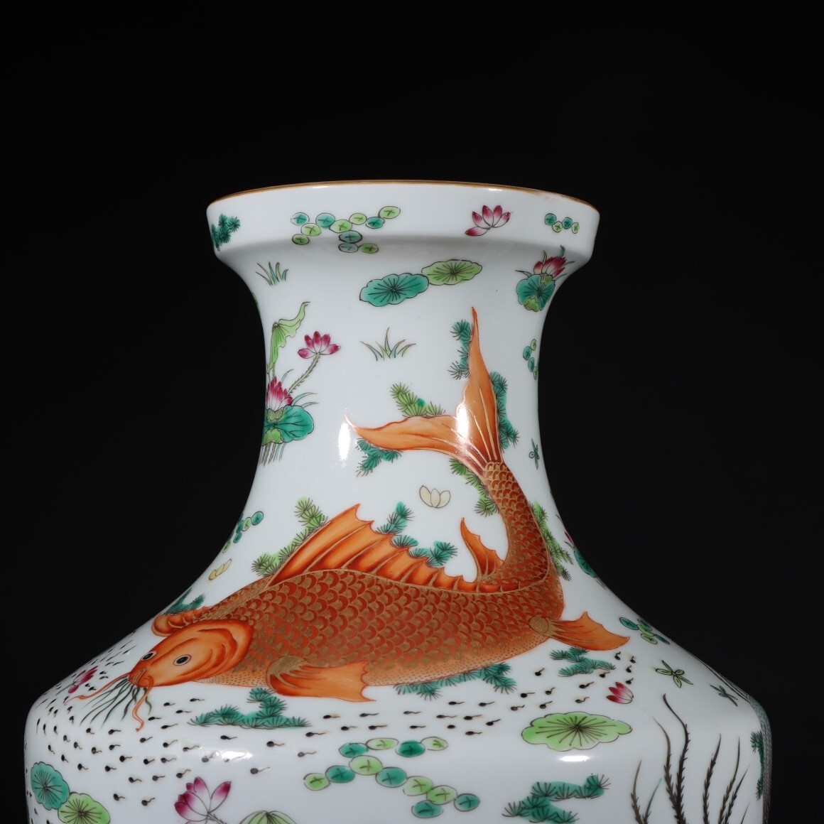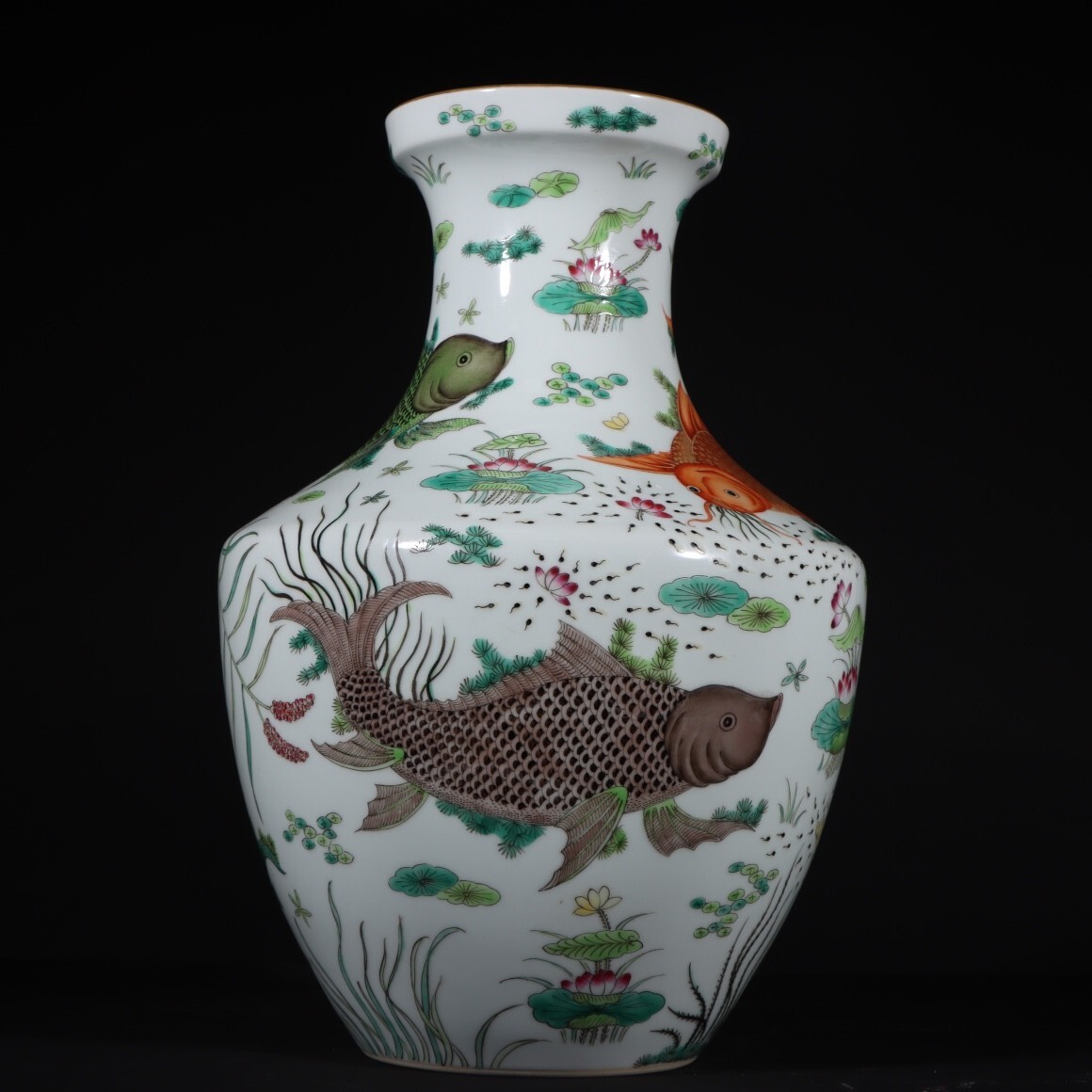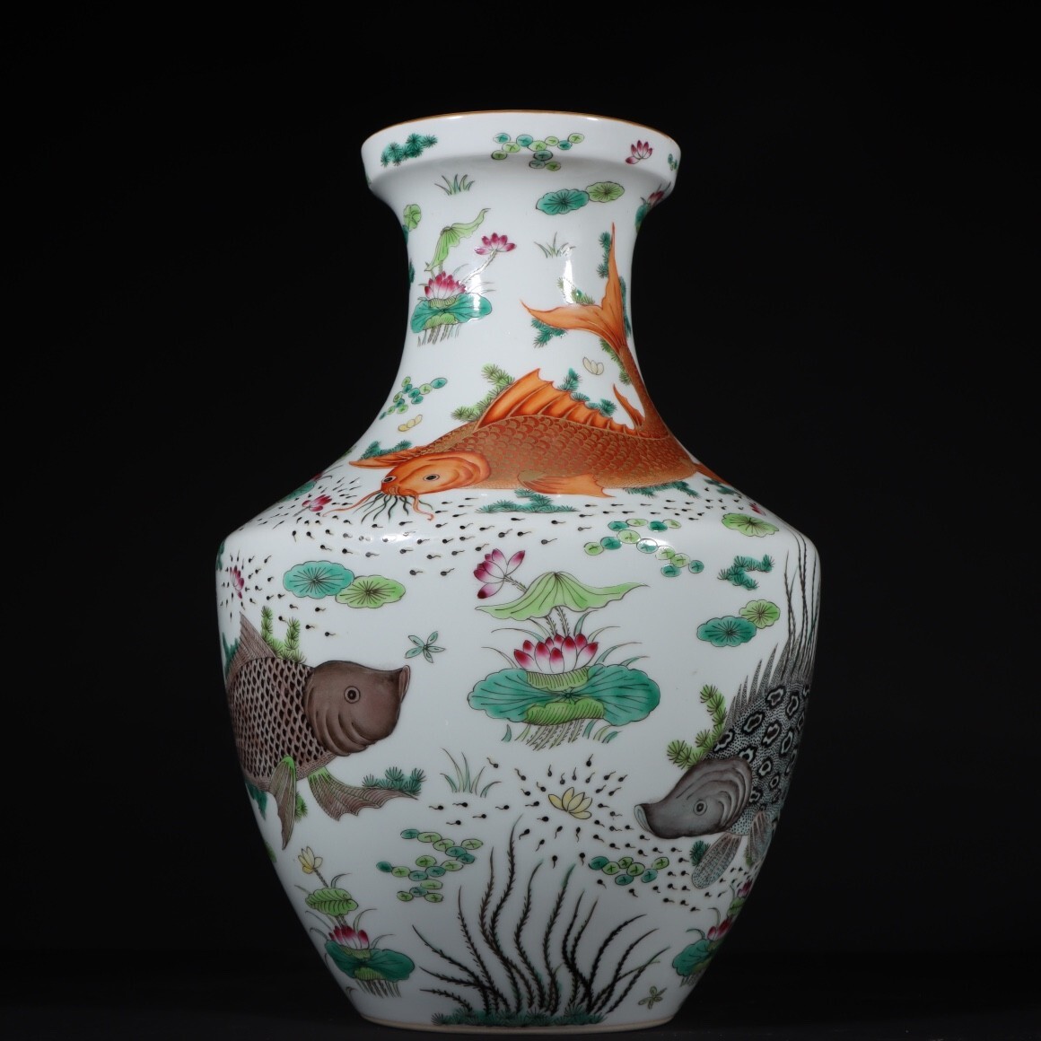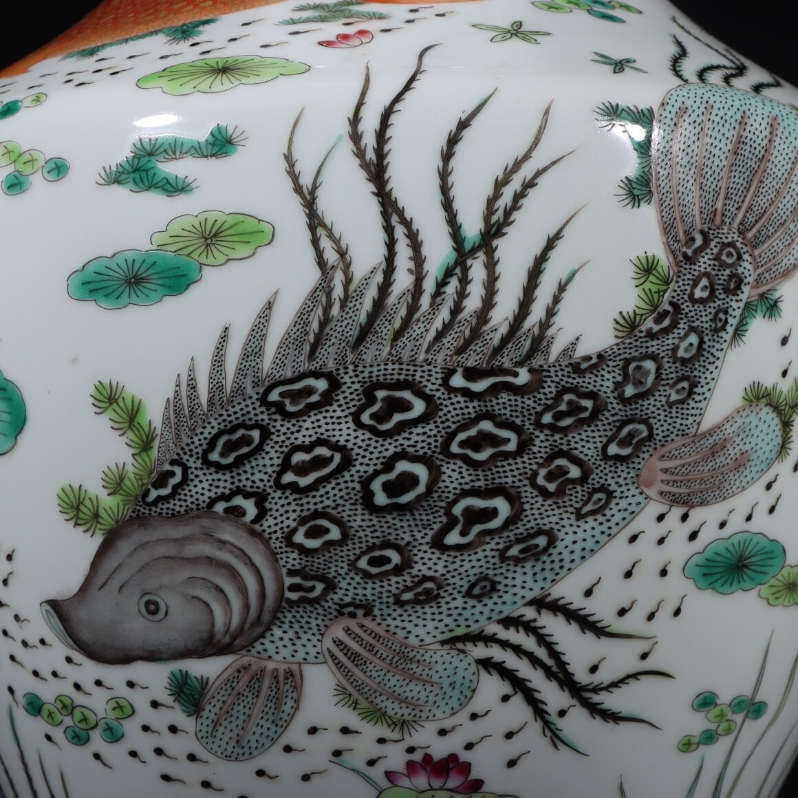 清代 大清雍正年製 陶磁器 粉彩魚藻紋尊【仁】染付 置物擺件 古賞物 中国古美術 蔵出