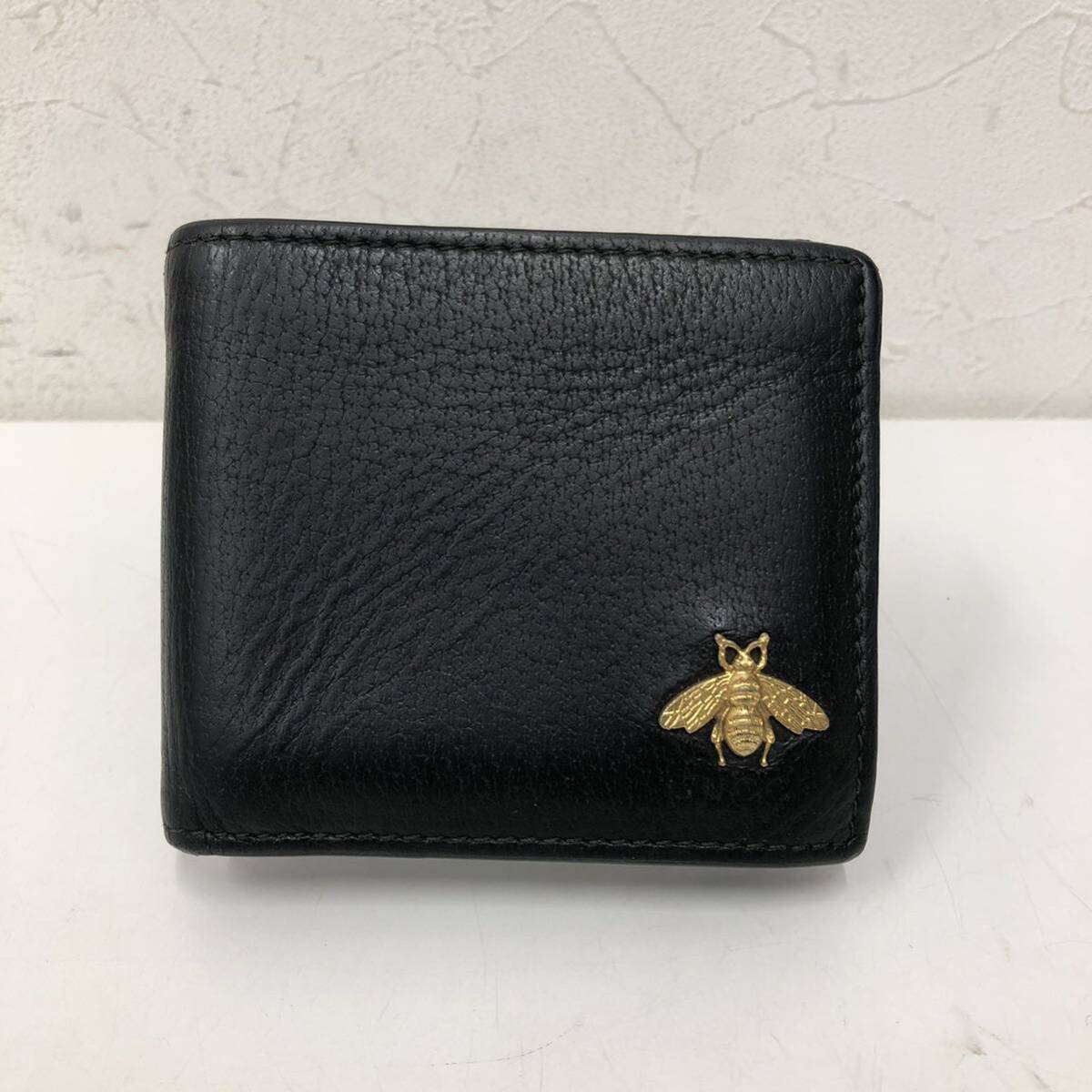 (21) GUCCI 二つ折り財布 アニマリエ グッチ レザー 財布 ブラック 黒 522915