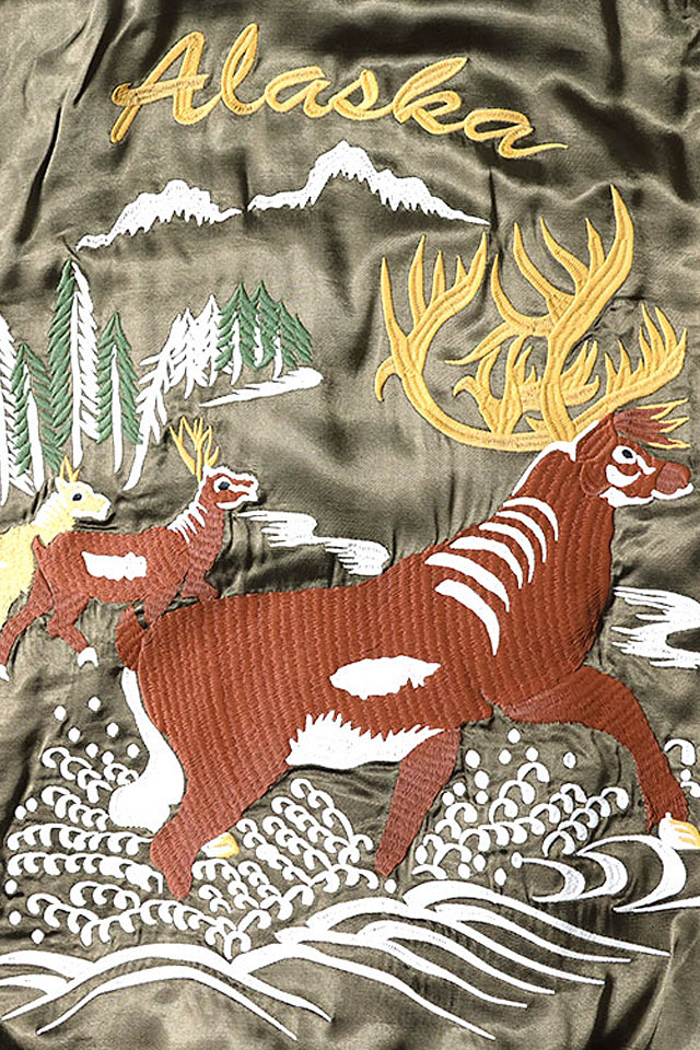 日本で初めてオリジナルのフライトジャケットを生み出し、その後も数々の国内製ミリタリー商品を製造する「ヒューストン」から、レーヨンサテンスカジャン「ALASKA」(51394)のご紹介です。 人気の高いアラスカ柄モチーフのスカジャンをレーヨン仕様でリリースしました。 レーヨン生地にオリーブカラーを採用しておりますので、今までのスカジャンをよりミリタリーライクなスタイリングに取り入れることも可能に。 袖の3本ラインも含め、HOUSTONならではの一着に仕上がっています。 | ||||||||||||||||||||