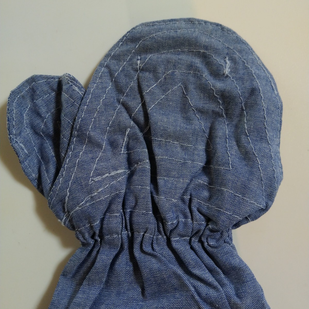 ガーデニングでの手の甲や指の日焼けを防ぐ 布地の手甲(水色)です。全長43cm 幅13cm