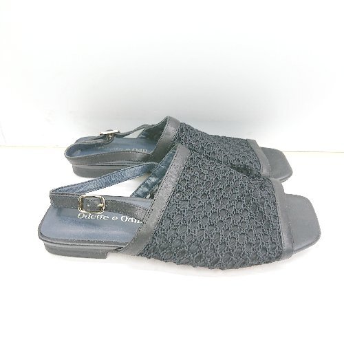 ◇ ODETTE E ODILE オデット エ オディール 甲部分シアー サンダル サイズ22.5 ブラック レディース E