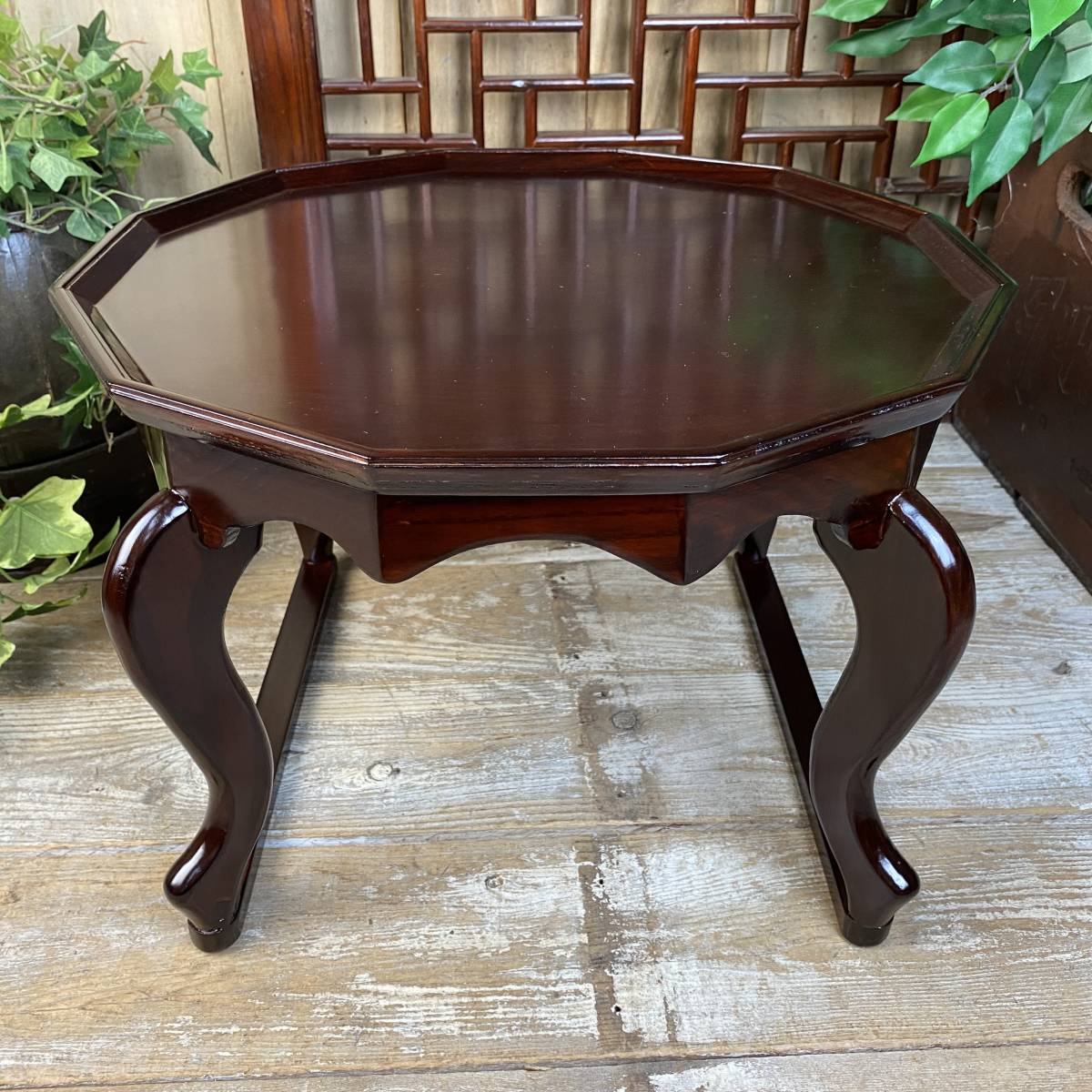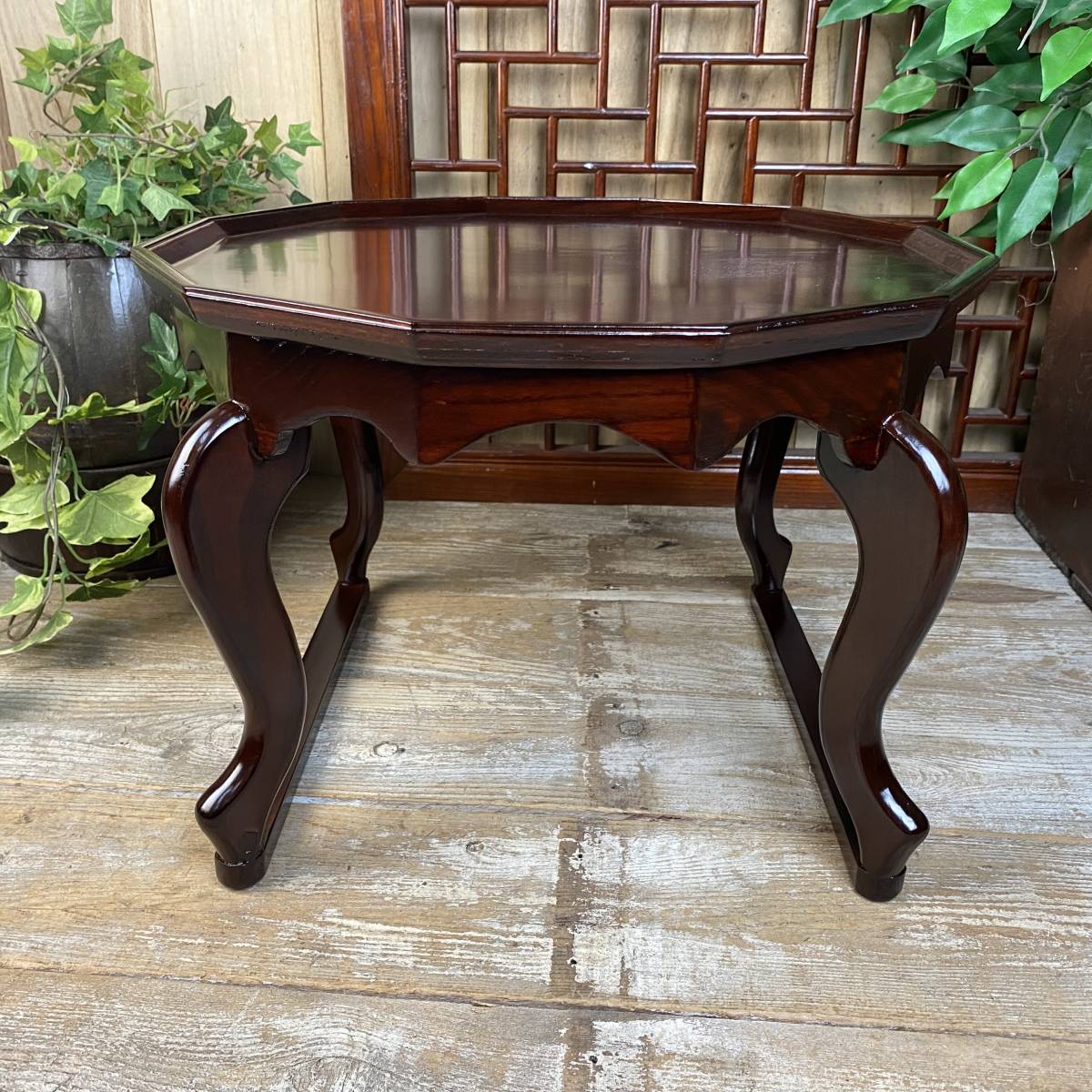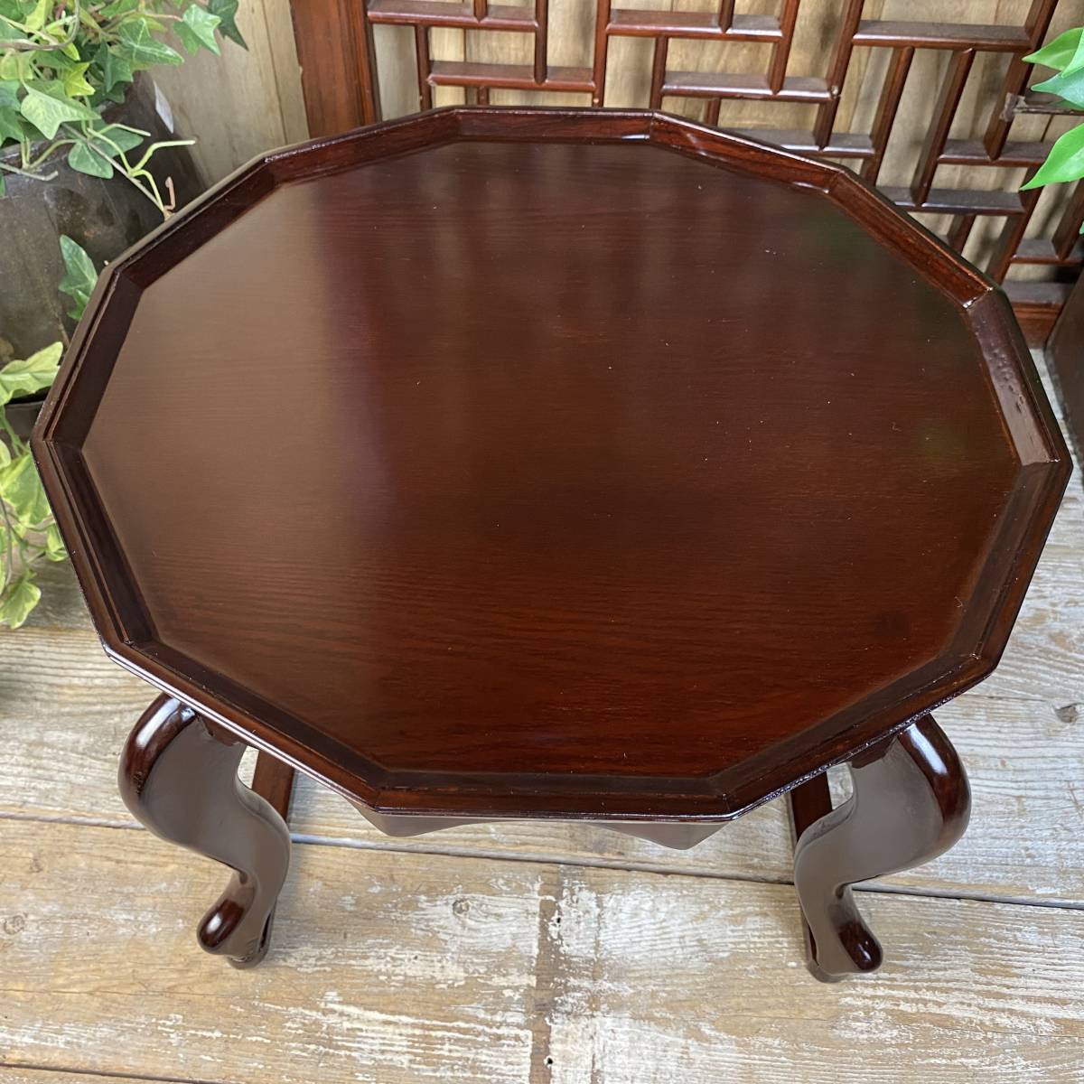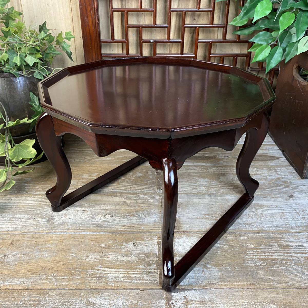 李朝お膳(大) 中国、韓国、李朝デザインが素敵な木製ティーテーブルです♪深みのある黒に近いダークブラウンの色合いです。レトロな猫脚デザインが素敵な品です。アジアンモダン、和室、エスニックなお部屋にもよく合いますよ!!小物やお花を飾るマルチ置台としても活用できます。盆栽や鉢、プランター和雑貨を飾っても雰囲気でますね!アジアンや和テイストのお部屋のインテリアにいかがですか。お店の飾りディスプレイにも重宝します。 【商品状態説明】 少々の色むらあり、まずまずの美品。 完成品になります。折りたたみ不可。 ・こちらの商品は、現品画像ではありません。 未開封の在庫の中から丁寧に検品後、発送いたします。 ※天然目使用のハンドメイド製品のため、画像と 木目や色合いなどに多少の違いがある場合がございます。 奥行:45㎝【サイズ】 横幅:45㎝ 高さ:30㎝ 【素材】 楡材 ウレタン塗装 【カラー】 ブラウン 【完品参考価格】 ¥16.000 | ◆◇発送方法◇◆ ●送料は基本無料ですが、沖縄・離島などにお住まいの方はご負担ください。 (沖縄・離島の方はメールにてご連絡いただければ、送料をお知らせいたします。) ●ヤマト運輸・佐川急便・第一貨物のいずれかにて配送いたします。 (運送会社の指定はできません。ご了承ください。) ●日時・時間指定のある方や、お問い合わせ(追跡)番号をご希望の方は取引連絡の際にお知らせください。 | |