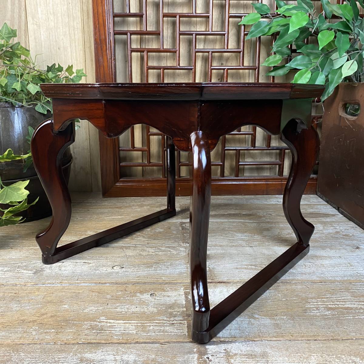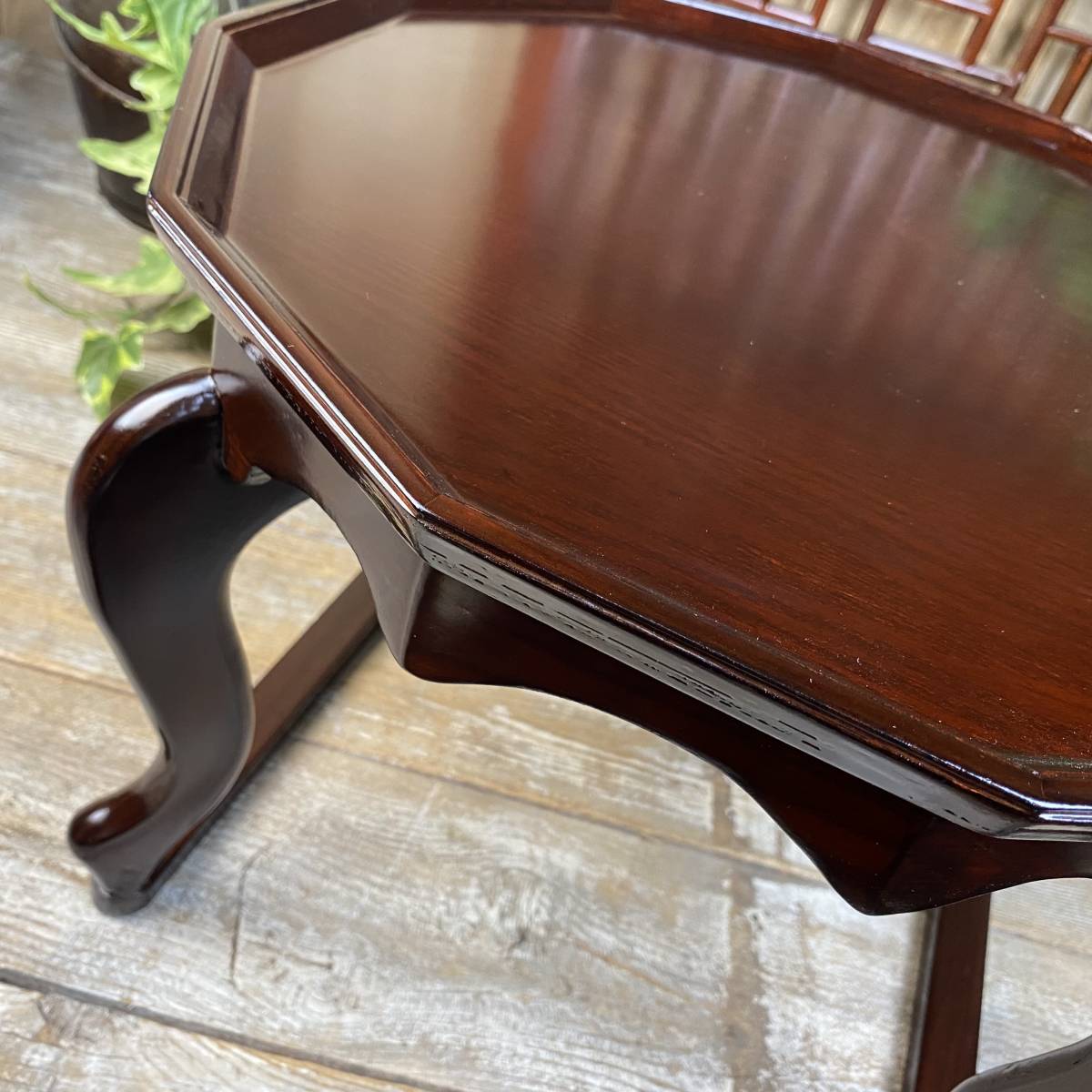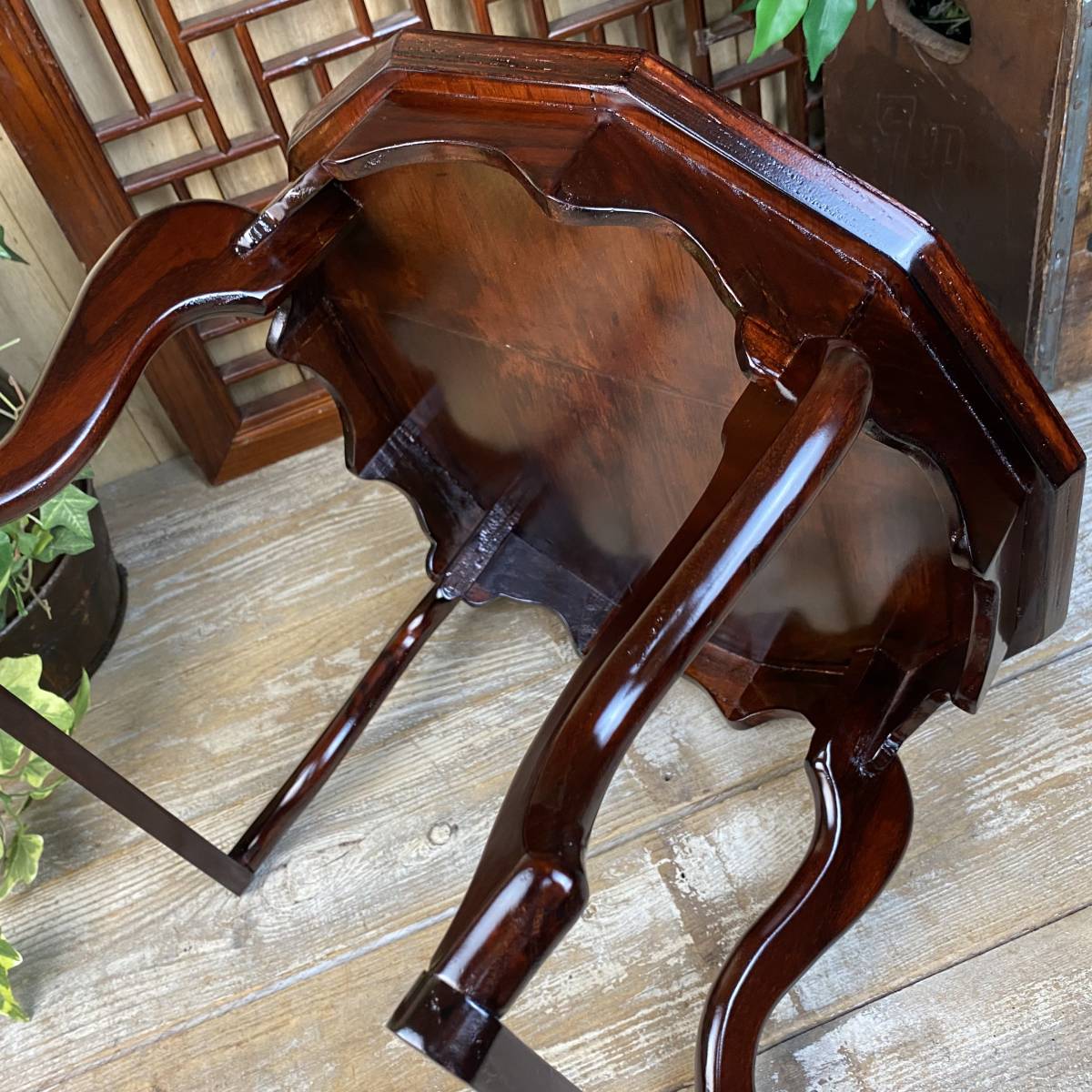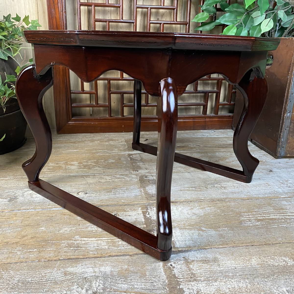 李朝お膳(大) 中国、韓国、李朝デザインが素敵な木製ティーテーブルです♪深みのある黒に近いダークブラウンの色合いです。レトロな猫脚デザインが素敵な品です。アジアンモダン、和室、エスニックなお部屋にもよく合いますよ!!小物やお花を飾るマルチ置台としても活用できます。盆栽や鉢、プランター和雑貨を飾っても雰囲気でますね!アジアンや和テイストのお部屋のインテリアにいかがですか。お店の飾りディスプレイにも重宝します。 【商品状態説明】 少々の色むらあり、まずまずの美品。 完成品になります。折りたたみ不可。 ・こちらの商品は、現品画像ではありません。 未開封の在庫の中から丁寧に検品後、発送いたします。 ※天然目使用のハンドメイド製品のため、画像と 木目や色合いなどに多少の違いがある場合がございます。 奥行:45㎝【サイズ】 横幅:45㎝ 高さ:30㎝ 【素材】 楡材 ウレタン塗装 【カラー】 ブラウン 【完品参考価格】 ¥16.000 | ◆◇発送方法◇◆ ●送料は基本無料ですが、沖縄・離島などにお住まいの方はご負担ください。 (沖縄・離島の方はメールにてご連絡いただければ、送料をお知らせいたします。) ●ヤマト運輸・佐川急便・第一貨物のいずれかにて配送いたします。 (運送会社の指定はできません。ご了承ください。) ●日時・時間指定のある方や、お問い合わせ(追跡)番号をご希望の方は取引連絡の際にお知らせください。 | |
