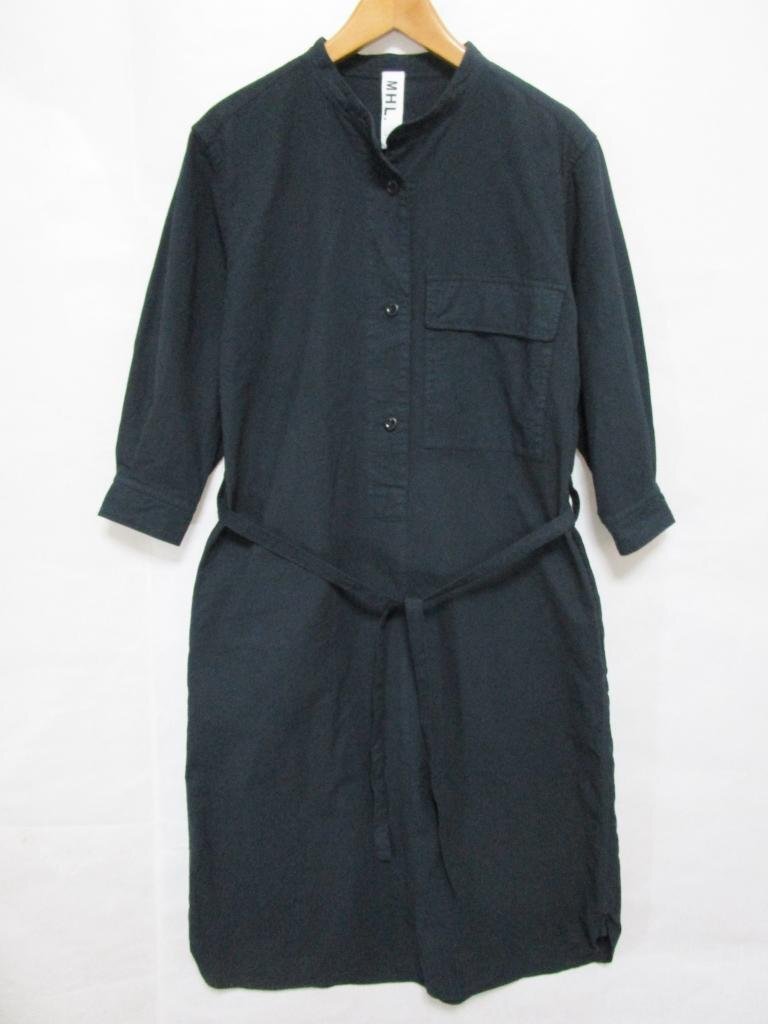 【送料込】 MHL. エムエイチエル ワンピース ブラック 黒 無地 コットン 綿100% DENSE COTTON シャツワンピース size1 S ナチュラル/963217
