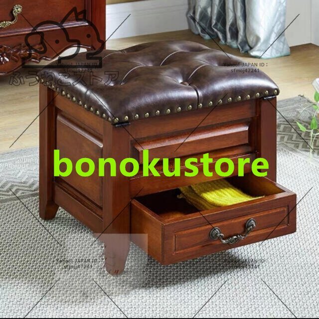 北欧風スツール ソリッドウッド レザーソファー 家庭用スツール コーヒーテーブルスツール 木製ベンチ 収納 z2377