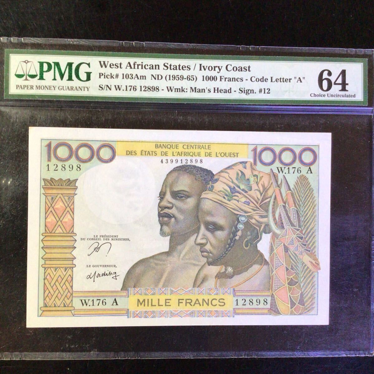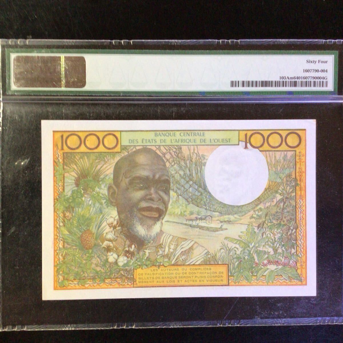 西アフリカ州《象牙海岸》1000フラン【1959-65】『PMGグレーディング鑑定 未使用 64』*状態表示については、個人によって多少の違いがありますが画像にて判断し納得して頂ける方のみ入札して下さい。