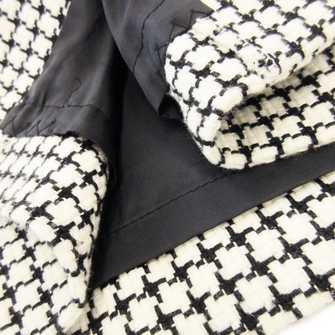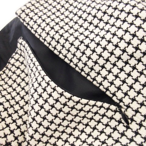 エムプルミエ M-Premier スカート タイト ひざ丈 コットン 麻混 リネン混 ベーシック バックスリット チェック 36 白 ホワイト