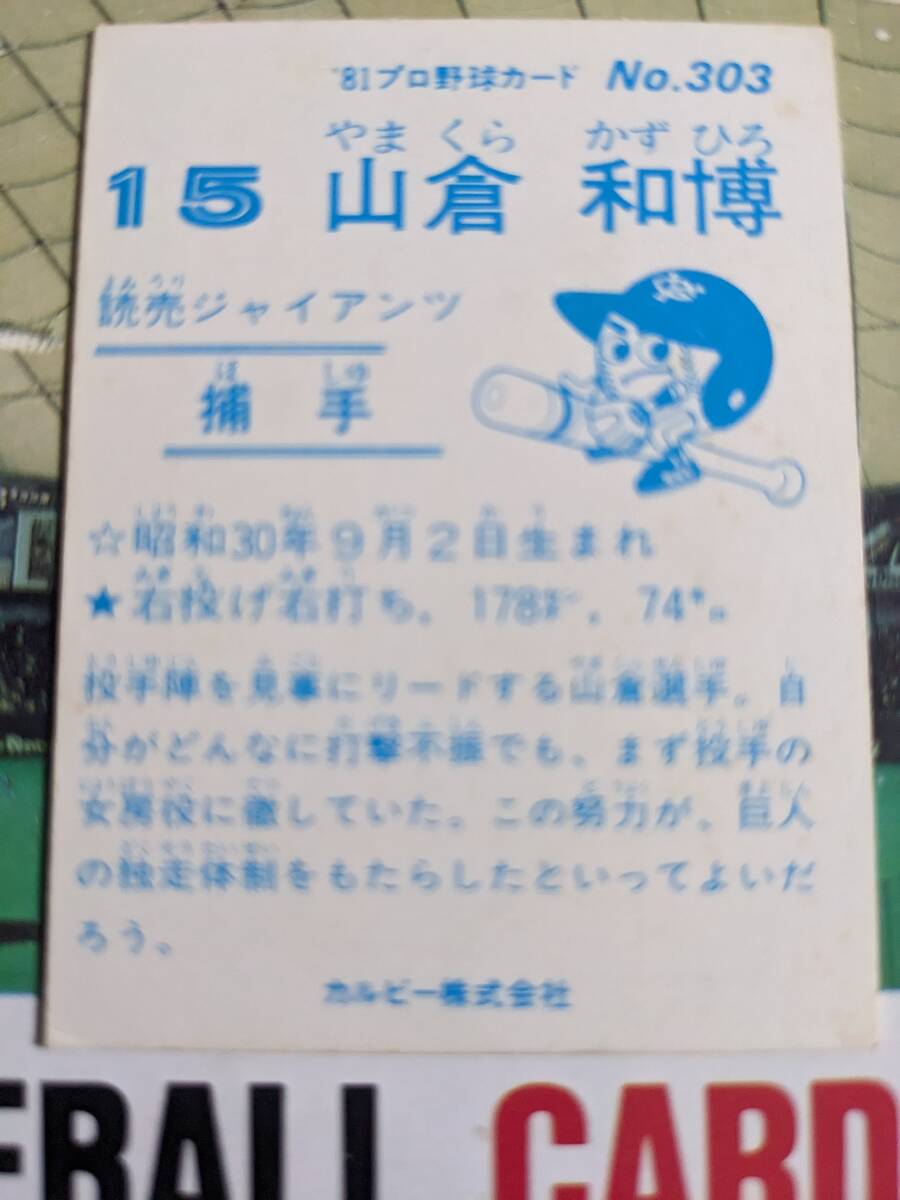巨人 1981年 カルビー プロ野球カード 山倉和博 No.303