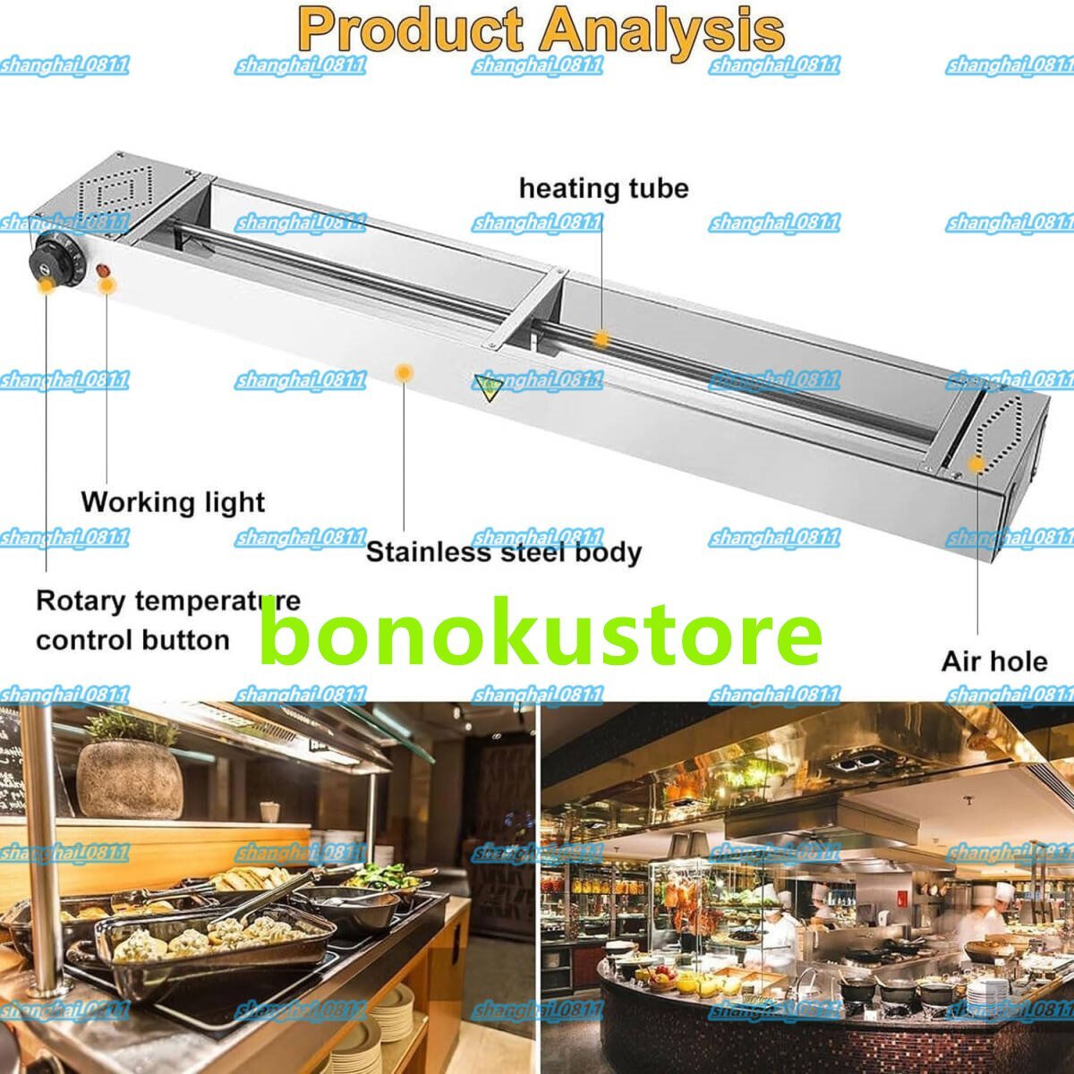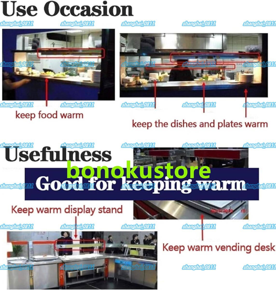 高品質の素材:食品加熱ランプは厚みのあるステンレス鋼素材で作られており、耐久性があり、高温に強く、変形しません。また、高性能加熱管により食品に一定の熱源を与えて最適な温度に保ち、食器類の高温殺菌も可能です。