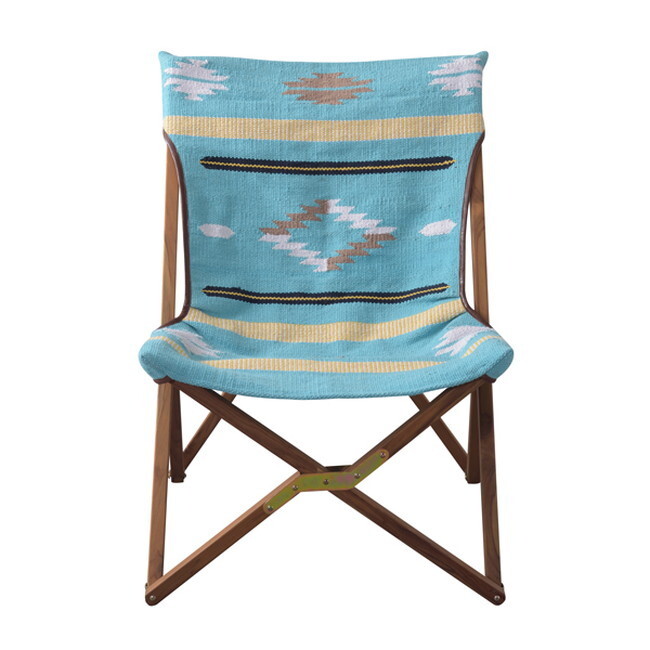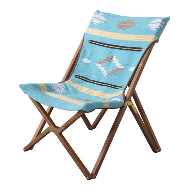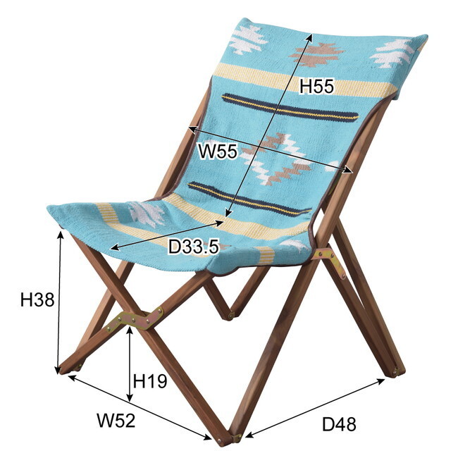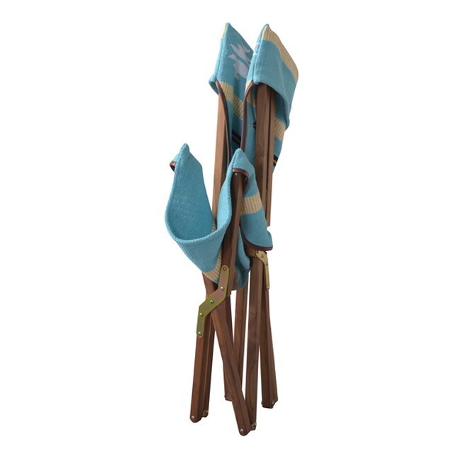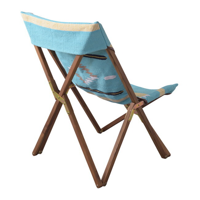 フォールディングチェア 【ブルー】 天然木(チーク) ウレタン塗装 コットン 本革