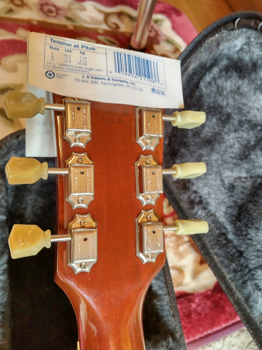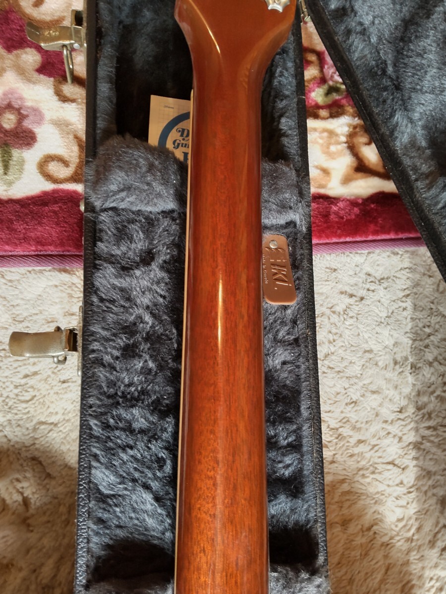 ほぼ家弾きで使用しており、きれい過ぎてあまり弾けなかったため使用率はかなり少ないです。ブリッジ関係やピックアップの金属部が経年変化でざらざらになったためプロに依頼して綺麗にしてもらっていますので、リアルエイジドが逆に神々しいです。ペグの金属部は表はやや経年変化あり、裏はキレイです。ネックの状態も良好、トラスロッドは触っていません。使用率少ないためフレットは8~9割、色褪せはありません。傷は、所々に光に当てて目を凝らせば見えるスレ傷、ピックガードの細かな擦れ傷、トップに2、3mmの打痕2ヶ所、ボディ裏に薄い線の様な傷(ガリガリではありません、塗装表面に付いたような傷)がありますが、パッと見は目立ちません。もしかしたらウェザーチェックがあるかもですが、それは喜ばしいエイジドで音はより良くなると個人的には思います。写真でもうまく写らなかったため、掲載出来ませんでした。