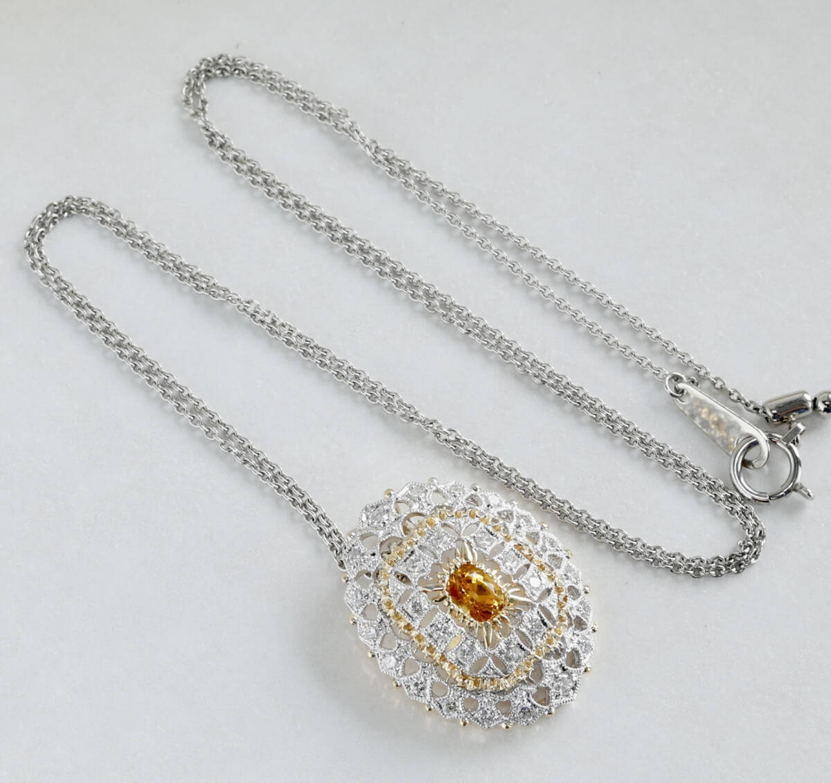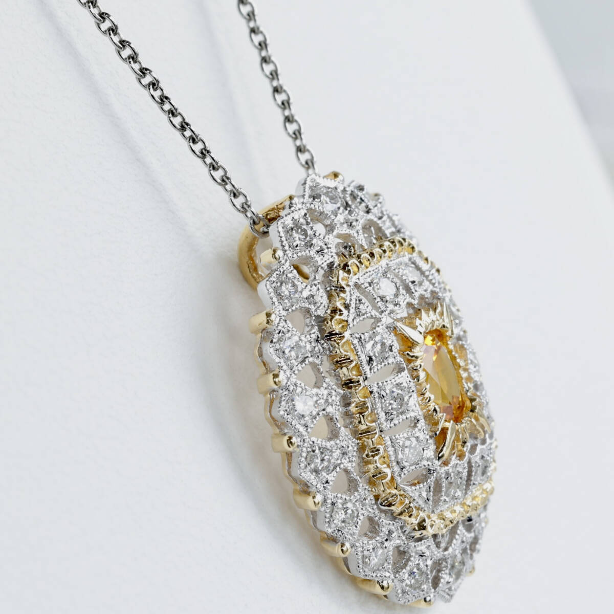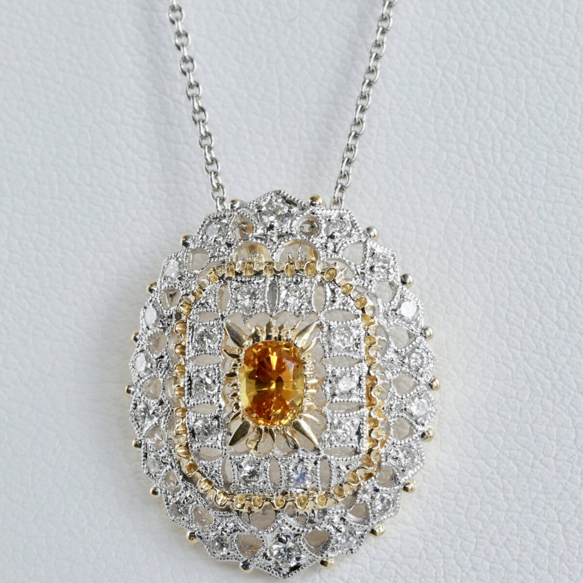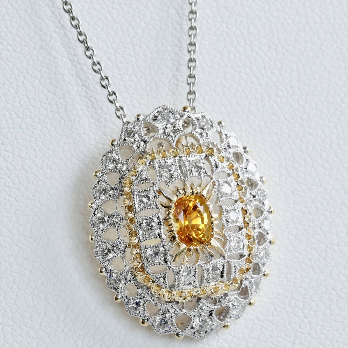 美しいゴールデンサファイアとダイヤモンドのネックレス。