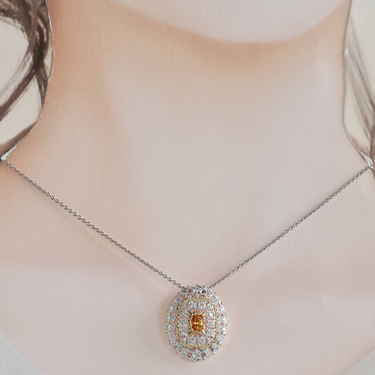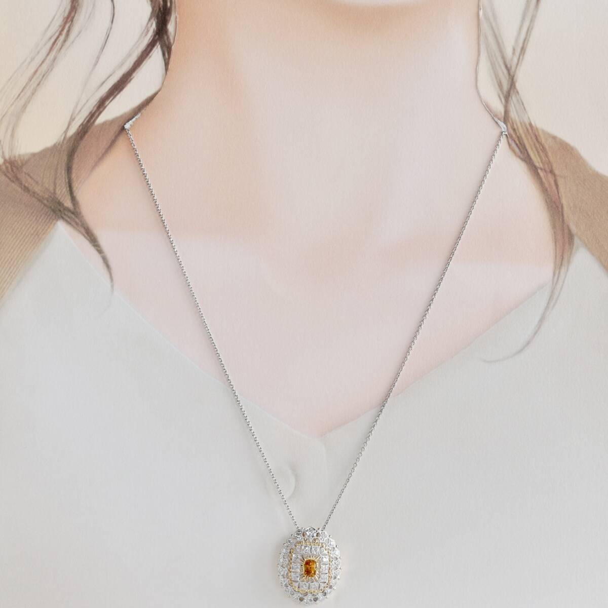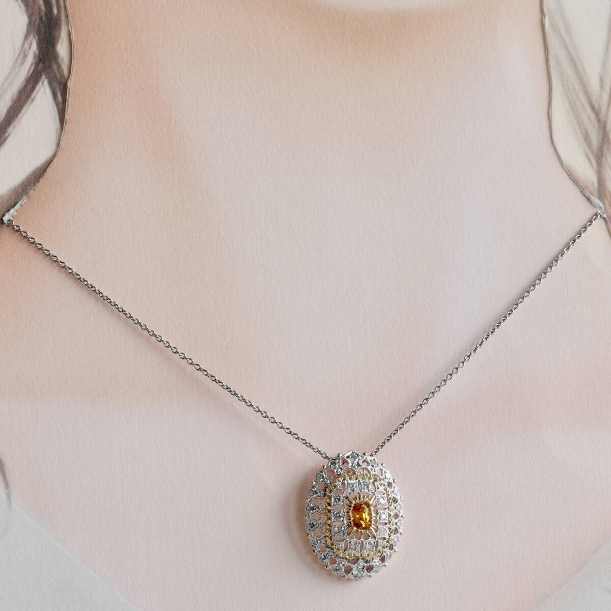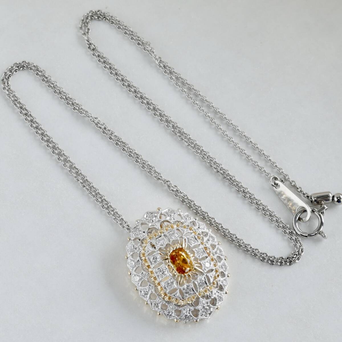 美しいゴールデンサファイアとダイヤモンドのネックレス。