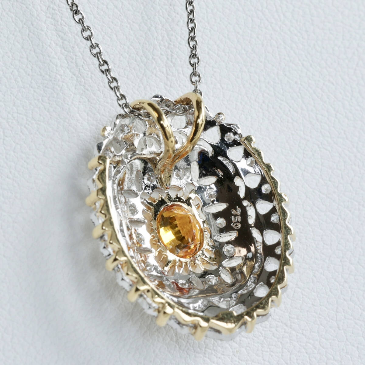750 WG YG ゴールデンサファイア 0.54ct ダイヤモンド 0.38ct ペンダントトップ フィレンツェ彫り イタリアンジュエリー
