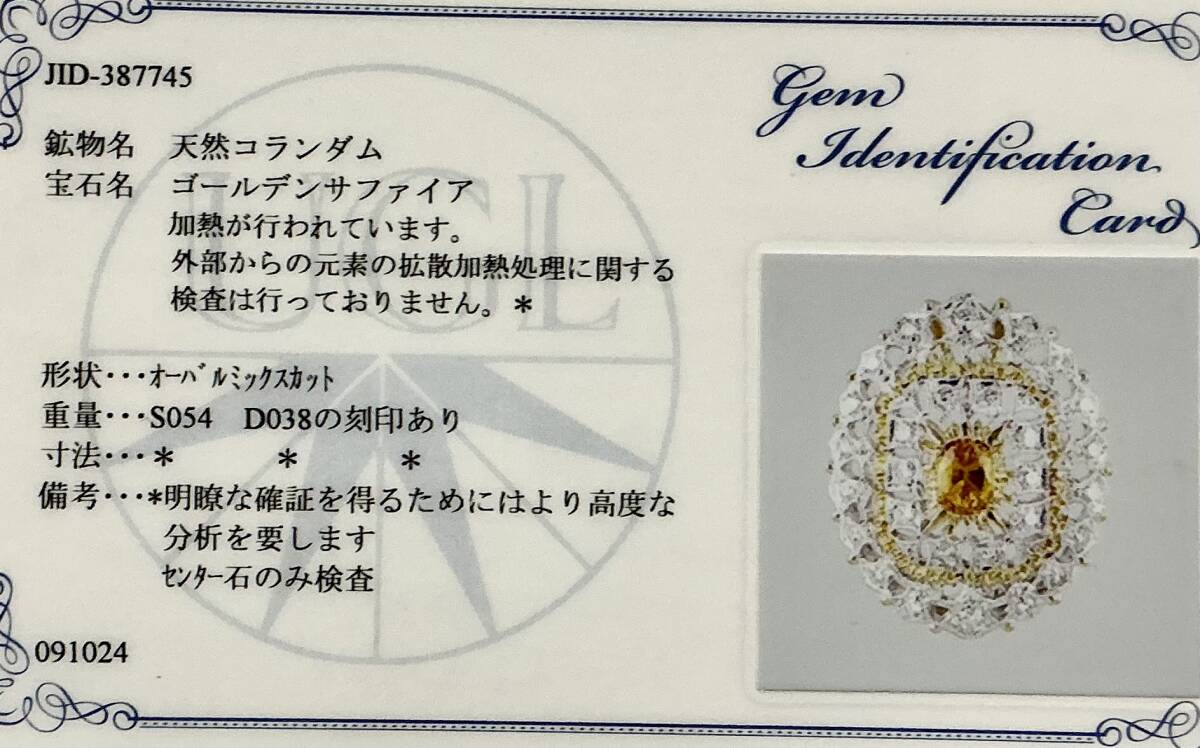 素材 750(K18)のイエロー・ホワイトゴールド ゴールデンサファイア 0.54ct ダイヤモンド  0.38ct   ・   プラチナ(チェーン)