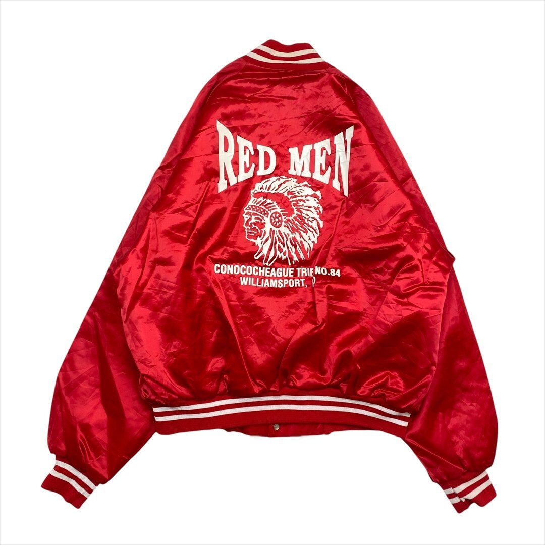 ジャケット レッド 古着 メンズ XXL スタジャン REDMAN インディアン USA製 クリーニング済み