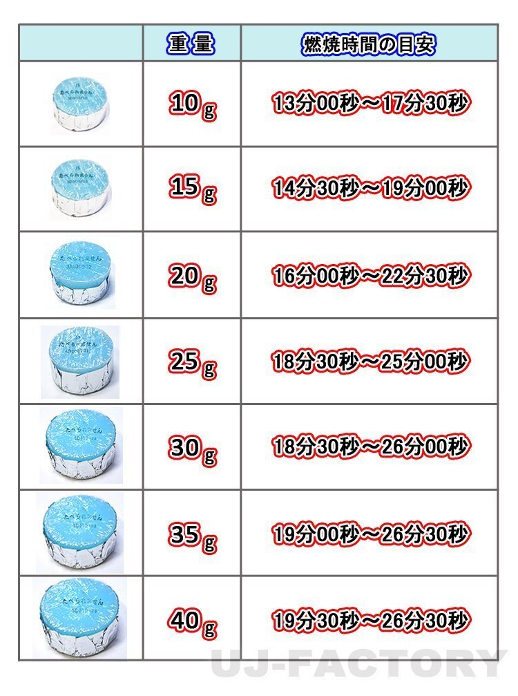燃焼時間 (目安)約:19分00秒~26分30秒