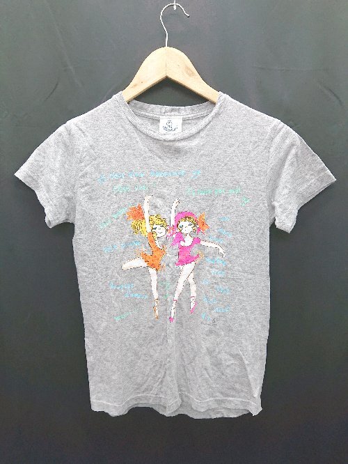◇ ⊂ ADO MIZUMORI 水森亜土 イラスト 半袖 Tシャツ カットソー グレー レディース P