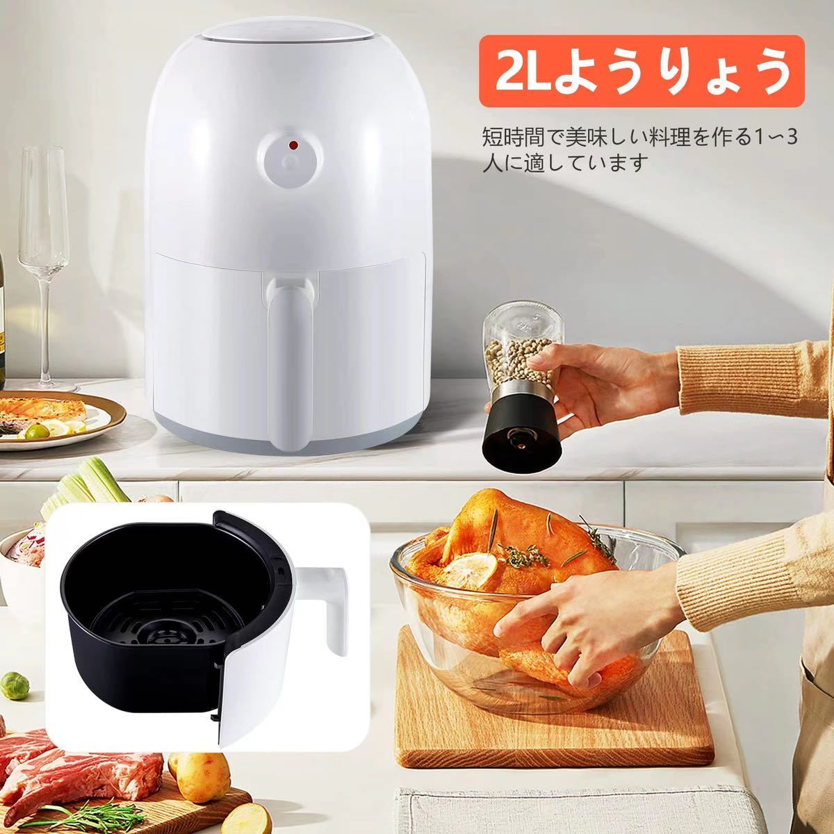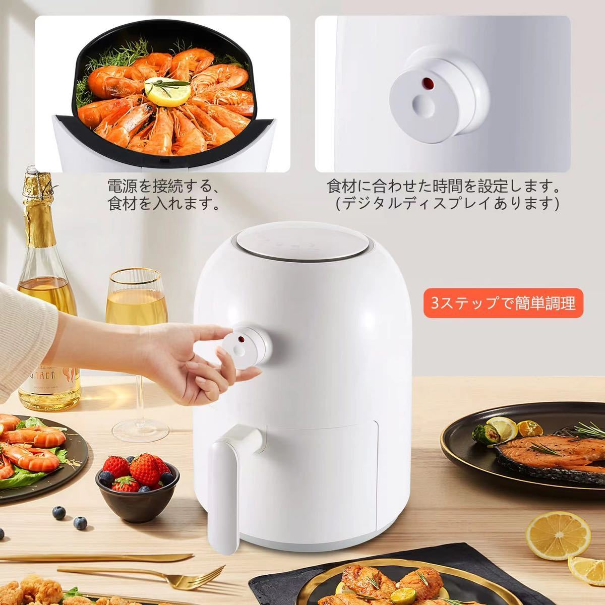 【クイック+簡単】時間が足りませんか? 2L容量のフライヤーバスケットをロードし、タイマーを設定するだけです。あなたの食べ物は毎回サクサク、保証されて出てきます。また、オーブンを予熱するよりも短時間で、エネルギー効率が向上します