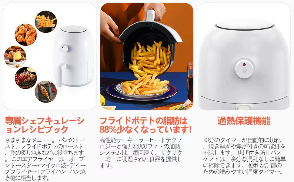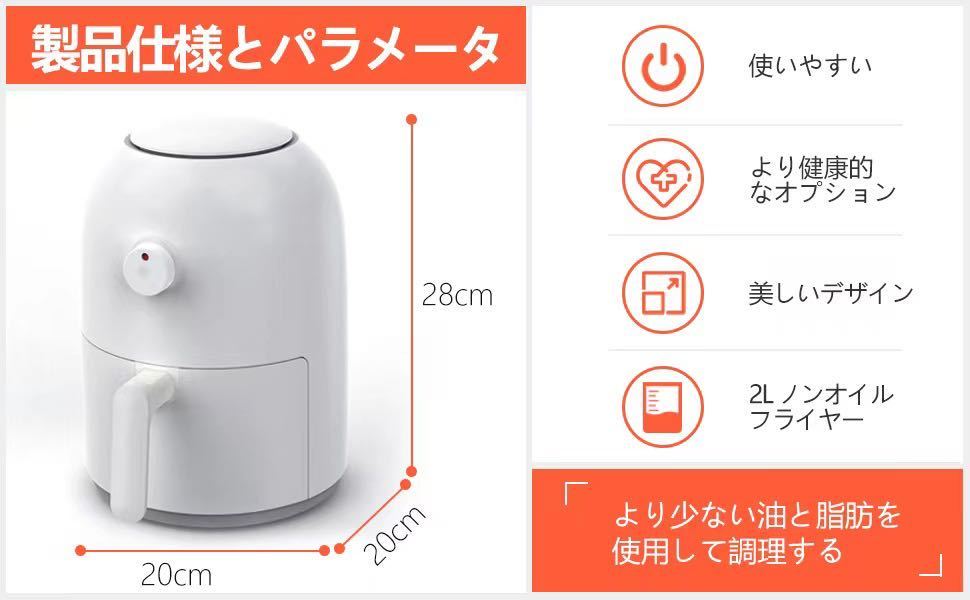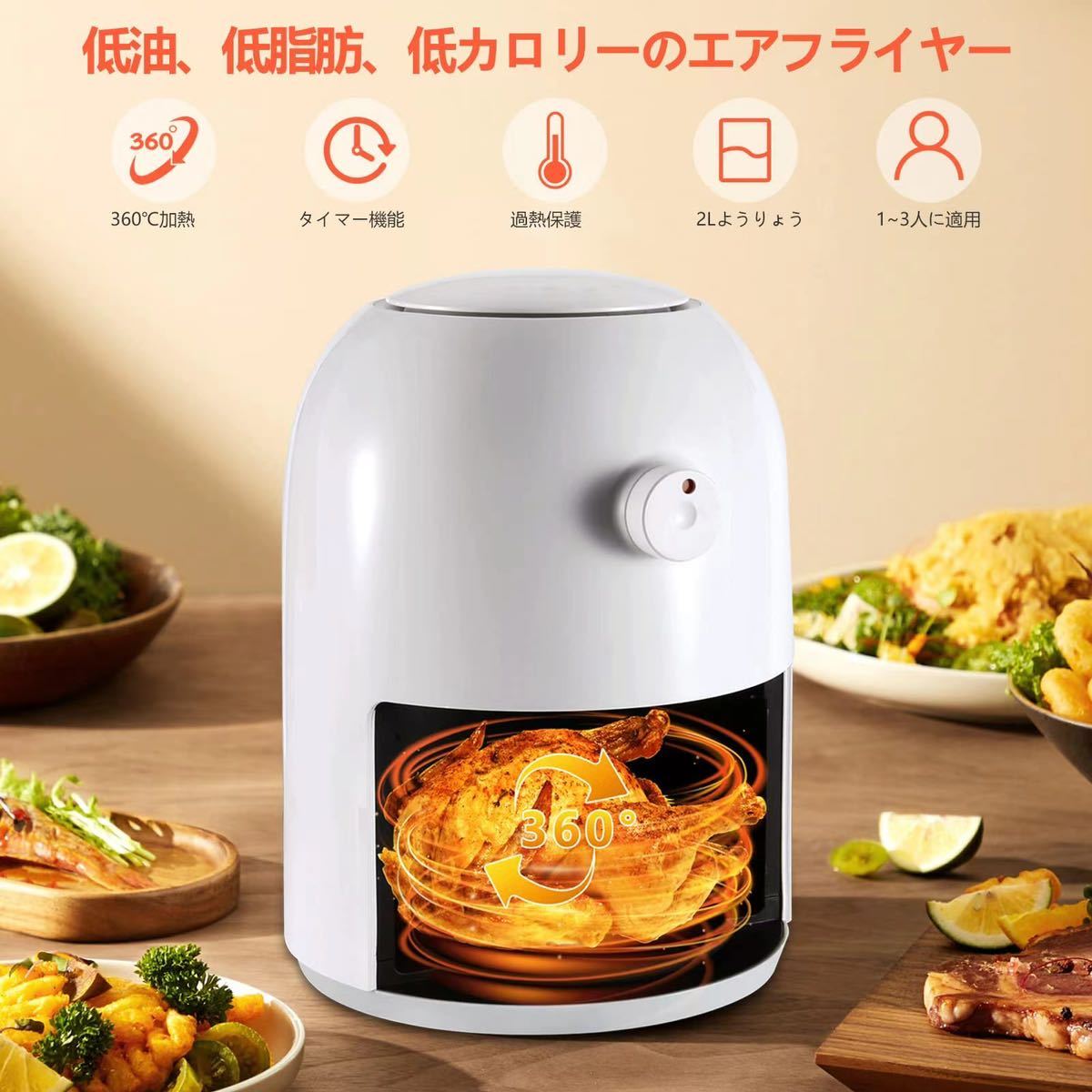 ノンフライヤー 2L エアフライヤー 800W 小さな電気フライヤー