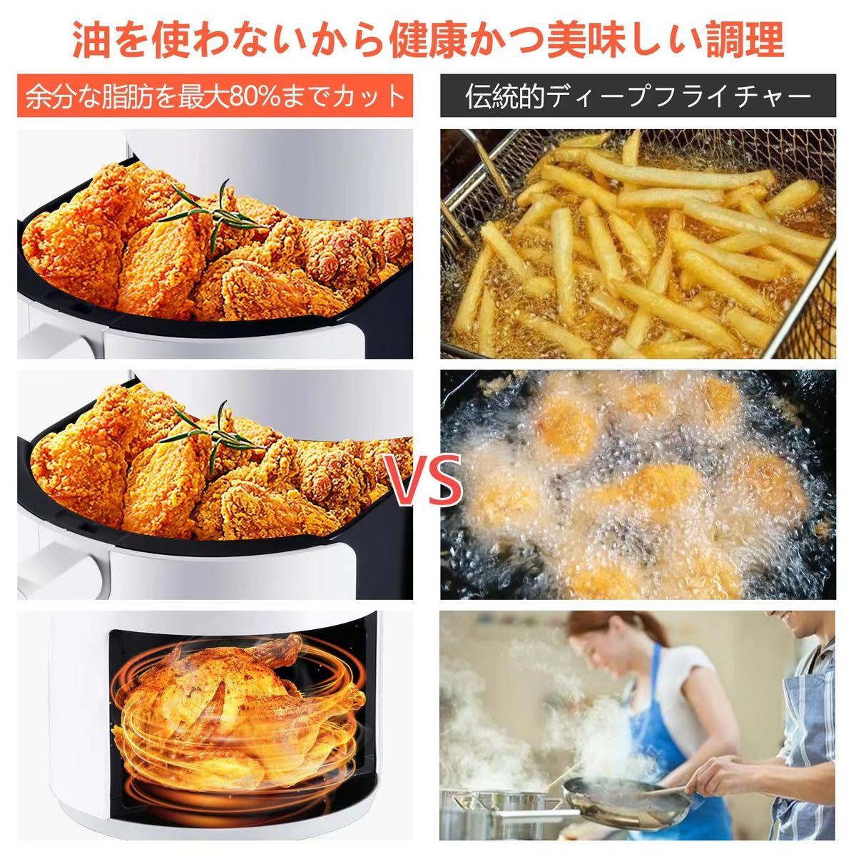 【より健康的な揚げ物】エアフライヤーは、(油の代わりに)エアクリスプテクノロジーを使用して、揚げ物の風味を犠牲にすることなく、追加の脂肪を70〜80%削減します(食べた後の残留臭い時間はもうありません)