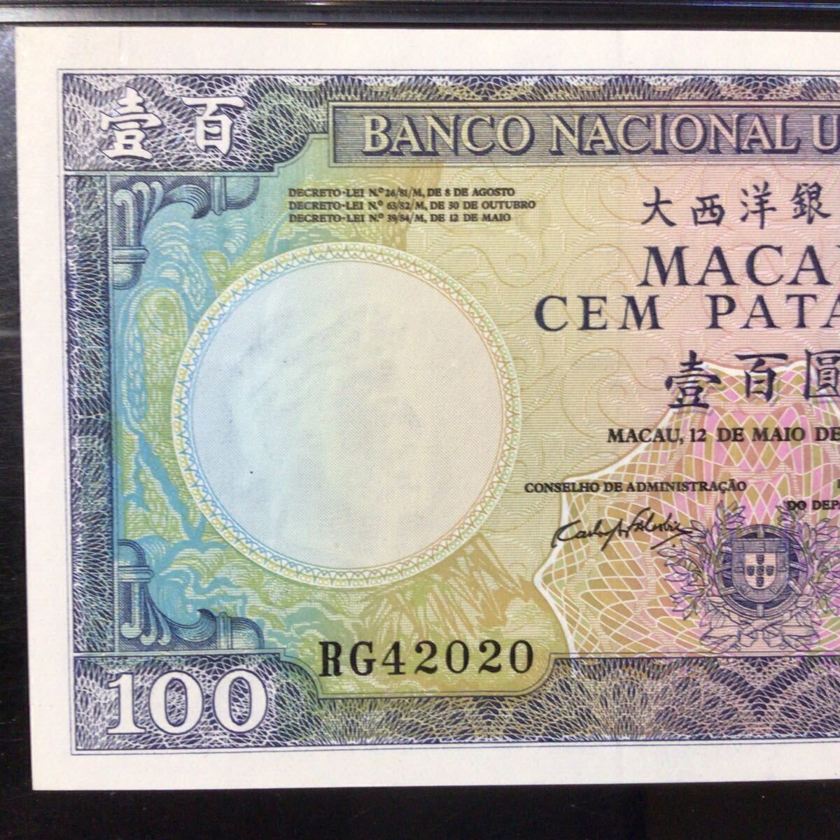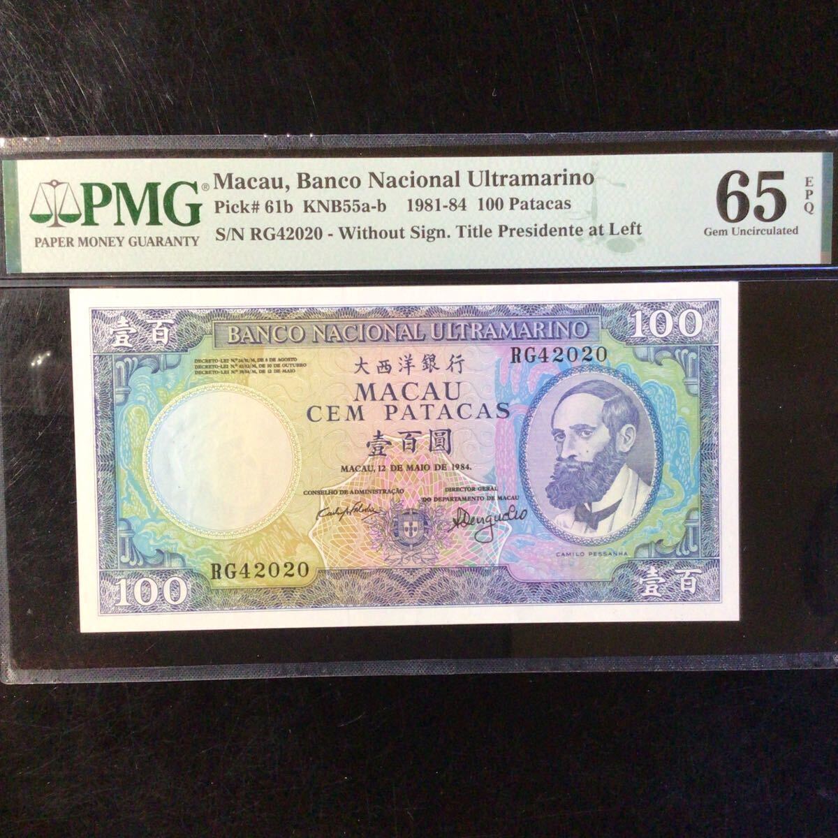 マカオ《大西洋銀行》壹百圓【1984】『PMGグレーディング鑑定 未使用 65 EPQ』*状態表示については、個人によって多少の違いがありますが画像にて判断し納得して頂ける方のみ入札して下さい。