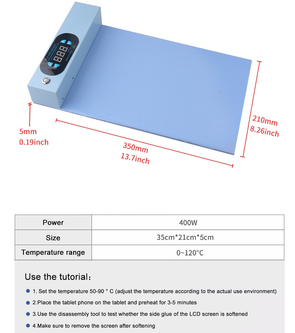 液晶画面スプリッターブルースクリーン加熱テーブルスプリッターパッド iPhone iPad 14 インチツール CPB 加熱パッド